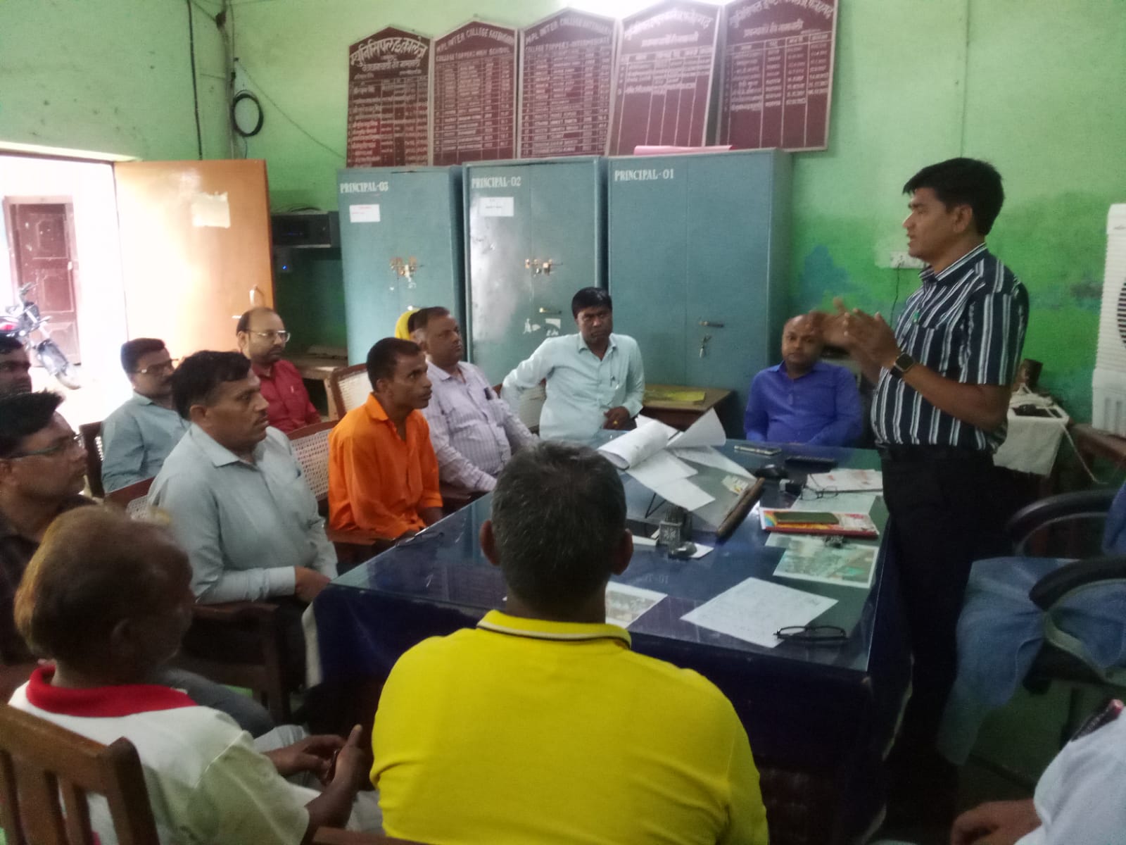 प्रधानाचार्य गिरिजा शंकर की अध्यक्षता में सम्पन्न हुई बैठक में कार्यकारिणी का चुनाव किया गया। जिसमें प्रवक्ता मयंक रस्तोगी मंत्री, प्रमोद कुमार उपमंत्री, रामनिवास कोषाध्यक्ष चुने गये। कार्यकारिणी के सदस्य अशोक कठेरिया, निशीत सक्सेना, रामेश्वर दयाल, विश्व प्रकाश दीक्षित, अरविन्द कुमार, डा0 दिनेश चन्द्रा, प्रबल प्रताप सिंह, मो0 अनीस अहमद, मनमोहन शाक्य चुने गये। प्रधानाचार्य गिरिजा शंकर ने कहा कि अभिभावक भी बच्चों की गतिविधियों पर ध्यान नजर रखे तथा उन्हें मोबाइल के गलत इस्तेमाल के प्रति सचेत करें। समय-समय पर बच्चों की उपस्थिति कालेज आकर चेक करें। उन्होंने बताया कि प्रबंधक वत्सला अग्रवाल से भी विद्यालय विकास के संबंध में आश्वासन मिला है। पालिका की बोर्ड की बैठक में कालेज के विकास का प्रस्ताव पास कराया जायेगा। प्रधानाचार्य ने बताया कि ३१ जुलाई तक प्रवेश प्रक्रिया चलेगी तथा ११ में एन0सी0सी0 लेने वाले छात्र २५ जुलाई तक रजिस्टे्रशन करा सकते है। भर्ती १ अगस्त को होगी। उन्होंने अभिभावकों एवं शिक्षकों से छात्रों के प्रवेश कराने का आवाह्न किया। अभिभावक मनमोहन शाक्य ने छात्रों में नैतिक गुणों का विकास करने की अपील की। विद्यालय प्रबन्धिका वत्सला अग्रवाल ने जारी बयान में कहा कि विद्यालय में ७६ लाख रु0 से एक हाल तथा तीन कमरों का निर्माण कराया गया है। इसके अलावा भौतिक विज्ञान की नई प्रयोगशाला तथा शौचालय भी बनवाया गया है। छात्रों के लिए उन्हें पेयजल हेतु आर0ओ0 लगवाया गया है। उन्होंने कहा कि विद्यालय के निर्धन तथा उदीयमान छात्रों को हर सम्भव मदद मुहैया करायी जायेगी।
