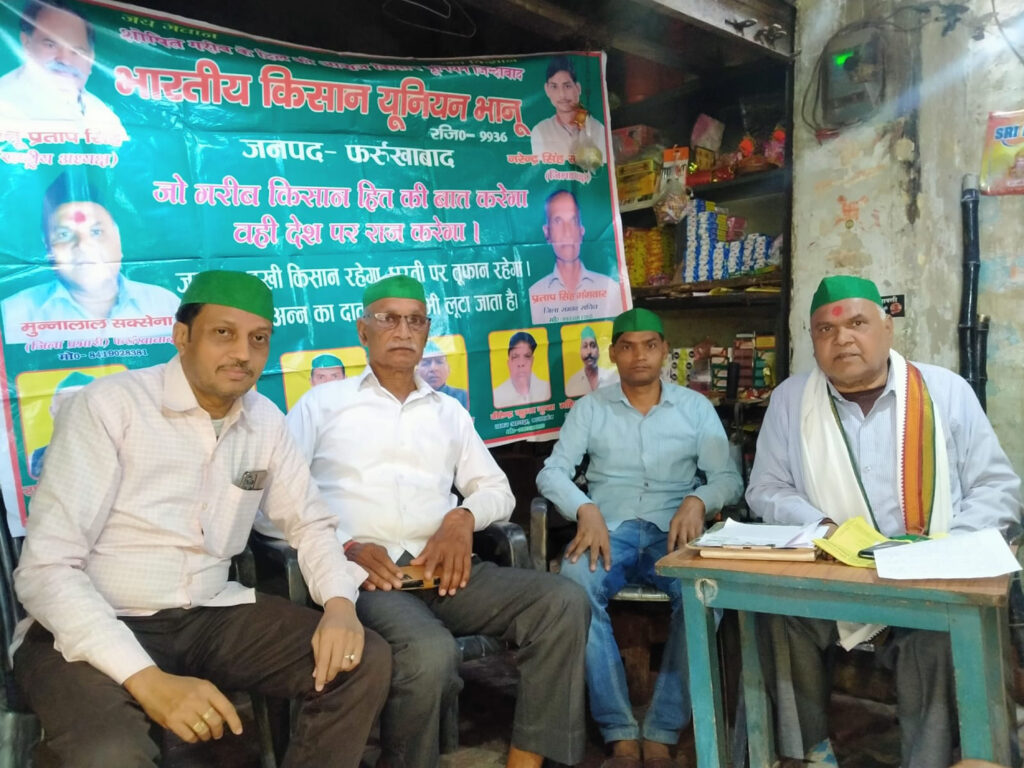 मुख्यमंत्री का जब जनपद में आगमन हुआ तो सांसद, विधायकों ने घर पर पुलिस का पहरा बैठा दिया। भारतीय किसान यूनियन (भानू गुट) इन सांसद विधायकों के कृत्य की निंदा करता है। मोदी सरकार देश का लोकतंत्र खत्म करना चाहती है। जिस तरह से नगर पालिका का चुनाव मोदी सरकार को जीतने नहीं दिया। इस तरह यदि ईवीएम से चुनाव नहीं हुआ और बैलेट पेपर से होता है तो मोदी सरकार का सांसद फर्रुखाबाद से जीतने नहीं देंगे। हमारी समस्याओं की ओर ध्यान नहीं दिया जा रहा है। कुछ प्रमुख मांगें इस प्रकार है। गंगा के दोनों किनारो पर बांध बनाकर गंगा को गहरा किया जाए। जिला मुख्यालय, तहसील, खंड विकास कार्यालय में बगैर रिश्वत के काम किसानों, आम जनमानस के नहीं हो रहे हैं। देवरामपुर में ओवरब्रिज बनवाया जाए, आवारा जानवरों से निजात दिलाई जाए, मोहम्मदाबाद में हवाई पट्टी को हवाई अड्डा बनाया जाए, भू-माफियाओं पर कार्यवाही की जाए, इंतखाब में छेड़छाड़ ना की जाए, अलग-अलग नंबरों के इंतखाब निकलवाने पर किसानों को धनहानि होती है। वर्तमान में भारती कृषक एसोसिएशन के राष्ट्रीय अध्यक्ष सुनील कुमार दुबे पुत्र शम्भू दयाल निवासी गुरऊ शादीनगर पखना व 10 अन्य पदाधिकारियों पर थाना मेरापुर पुलिस द्वारा 107/16 की कार्यवाही की गयी। जिसे तत्काल समाप्त किया जाए। जिला प्रभारी मुन्नालाल सक्सेना ने कहा आगामी समय चुनाव 2024 सांसदी क्षेत्र के होने हैं पर जनप्रतिनिधियों ने चीनी मिल कायमगंज की पेराई क्षमता का विस्तार नहीं होने दिया। आलू आधारित उद्योगों की स्थापना नहीं होने दी। सहारा का पैसा किसानों को नहीं मिल रहा है। पुलिस विभाग किसानों की समस्याओं को संज्ञान में नहीं लेते हैं। पंचायत में जिला संगठन सचिव प्रताप सिंह गंगवार, जिला प्रभारी मुन्नालाल सक्सेना, जिला उपाध्यक्ष रागिब हुसैन खां, जिला संगठन और प्रचार मंत्री अमरीश शुक्ला, नगर अध्यक्ष वीरेंद्र कुमार गुप्ता, मीडिया प्रभारी विनीत कुमार, तहसील महासचिव श्योराज शाक्य, तहसील अध्यक्ष विजय शाक्य, जिला सचिव रामवीर, राजेश शर्मा, रक्षपाल आदि कार्यकर्ता और पदाधिकारी उपस्थित रहे।