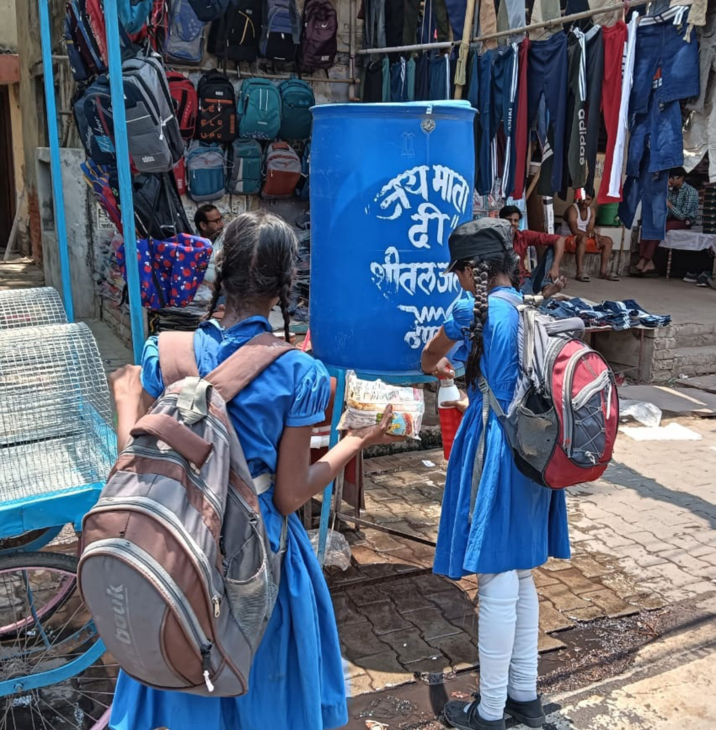 शीतल जल पीकर बच्चों ने बुझाई अपनी प्यास