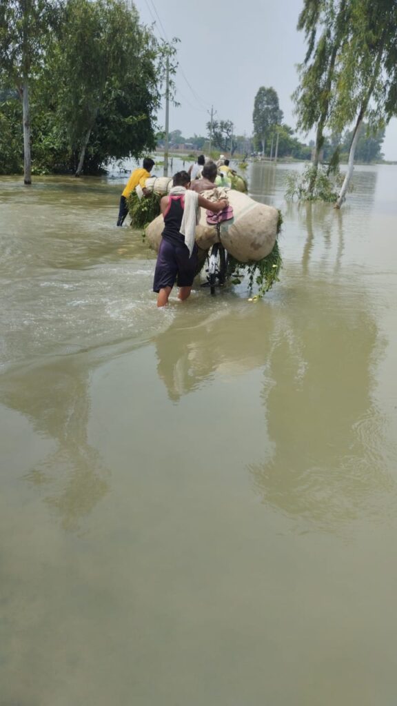 अमृतपुर, समृद्धि न्यूज। गंगा में आई बाढ़ के पानी के तेज बहाव के चलते कड़हर मार्ग कट गया। इससे 60 से अधिक गांव का जिले से संपर्क टूट गया है। गंगा के जलस्तर में 10 सेंटीमीटर की कमी आई है। जिले में 2 दिन से रुक-रुककर हो रही भारी बारिश ने बाढ़ पीडि़तों की दिक्कतें और बढ़ा दी हैं। जनपद में गंगा व रामगंगा की बाढ़ से अमृतपुर तहसील क्षेत्र में तबाही मची है। कई सडक़ें कट गई हैं तो कई पर पानी बह रहा है। इससे लोगों का आवागमन नाव से हो रहा है। वहीं चाचूपुर से कड़हर जाने वाला मार्ग अर्जुनपुर बाढ़ के तेज बहाव से कट गया है। जिससे ग्राम आंतर, भुडऱा, भरेहपुर, कुंवरपुरा, सुंदरपुर, कछुआ गाड़ा, राजाराम की मढैय़ा, नगला दुर्गू, सवितापुर, सवासी, नौनपूर्वा, प्रतिपालपुर, परम नगर, महमदगंज, तेरा, अकबरपुर, धीरजपुर, सिया, खुटिया, गोपालपुर, सरह, दुर्जनपुर्वा, मिश्रनपुरवा, कोला, महमदपुर, द्विवसी, हुसैनापुर, बर्रा और हरदोई के गांव रबियापुर, सरेसर, नौथा, दलिया सहित करीब 60 गांव का जिला मुख्यालय से संपर्क टूट गया है। वहीं नगला केवल को जाने वाला मार्ग पहले ही कट चुका है। इससे बदनपुर डांडीपुर के ग्रामीणों ने जमापुर के पास लकड़ी का पुल बना लिया था। रात में पानी के तेज बहाव में यह पुल भी बह गया। मजबूर ग्रामीण गहरे पानी से निकल रहे हैं। गंगा का जलस्तर बढक़र 137.35 मीटर पर पहुंच गया है। आज नरौरा बांध से गंगा में पानी छोड़ा गया है। जिससे जल स्तर बढऩे की और संभावना हंै। वहीं रामगंगा नदी का जलस्तर घटकर 136.2 20 मीटर पर पहुंच गया है। जल स्तर कम होने से कटान तेज हो गया है।