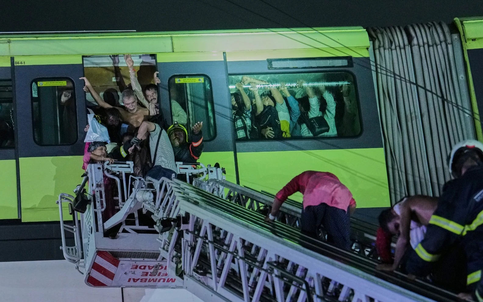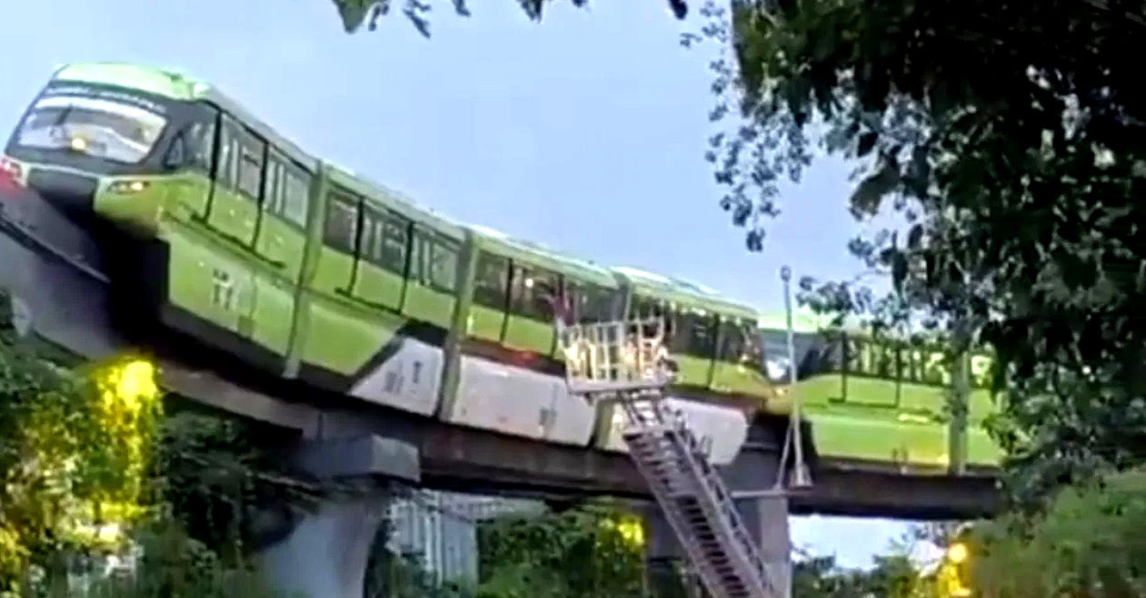 मुंबई में भारी बारिश के चलते एक मोनोरेल ट्रेन मायसूर कॉलोनी और भक्ति पार्क के बीच फंस गई। कारण है कि भीड़ के कारण ट्रेन पर क्षमता से अधिक भार पडऩे से बिजली सप्लाई ठप हो गई थी। 500 से अधिक यात्री घंटों तक ट्रेन में फंसे रहे। लोगों में घबराहट और डर इतना बढ़ गया कि कुछ यात्री कूदने को भी तैयार थे, लेकिन फायर ब्रिगेड ने बहादुरी से रेस्क्यू कर सभी को सुरक्षित निकाला।