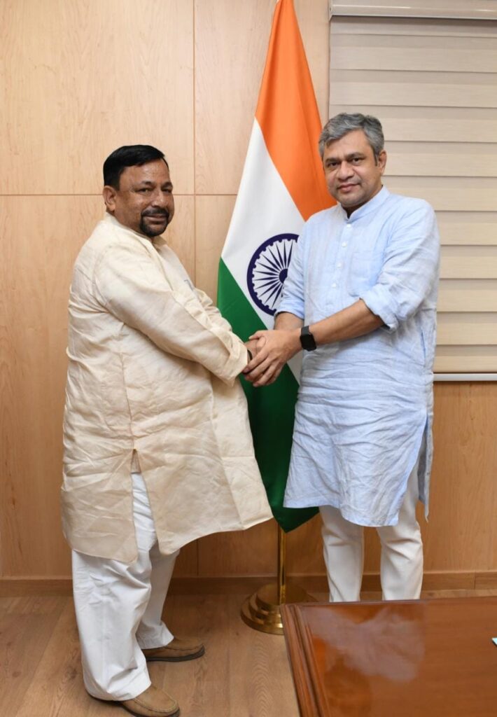 फर्रुखाबाद, समृद्धि न्यूज। भारत सरकार के रेलमंत्री अश्विनी वैष्णव से सांसद मुकेश राजपूत ने भेंटकर कालिंदी एक्सप्रेस को प्रयागराज तक बढ़ाने के लिए, कानपुर-मथुरा रेलवे लाइन के दोहरीकरण व कानपुर से फर्रुखाबाद होते हुए हरिद्वार के लिए बंदे भारत ट्रेन चलाने के साथ कानपुर से आनंद विहार तक चलने वाली साप्ताहिक ट्रेन को सप्ताह में तीन दिन चलाने की मांग की। इस पर केंद्रीय रेल मंत्री ने सांसद मुकेश राजपूत को आश्वासन दिया कि इन पर विचार कर जल्द ही इन्हे पूरा कराने का प्रयास करेंगे।