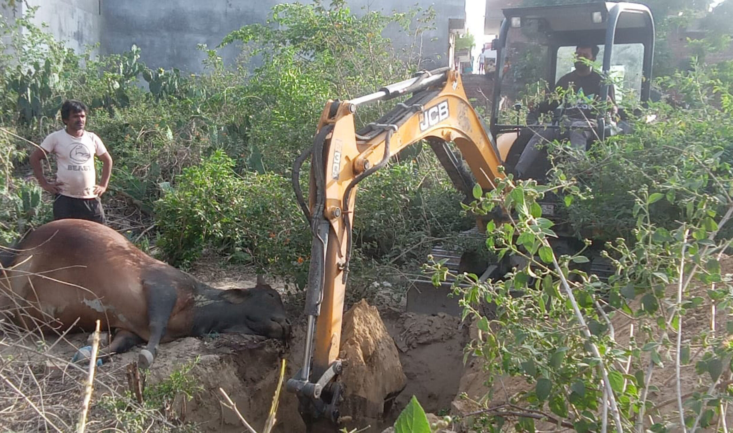 अधिकारियों को सूचना देने के बाद हरकत में आये कर्मचारी जेसीबी लेकर पहुंचे