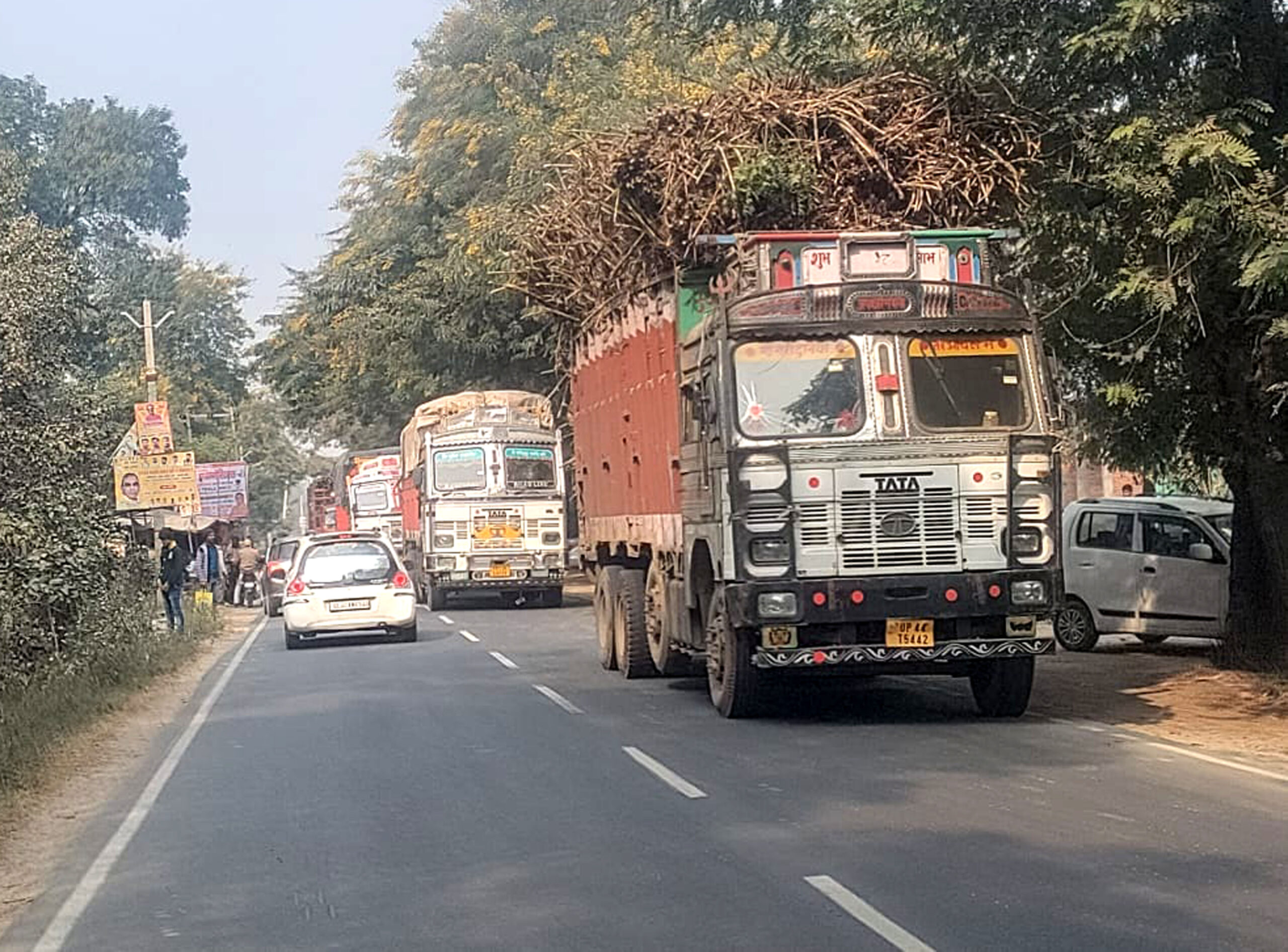 ओवरलोड ट्रक से नायब तहसीलदार की गाड़ी पर गिरी गन्ने फांदी, बाल-बाल बचे