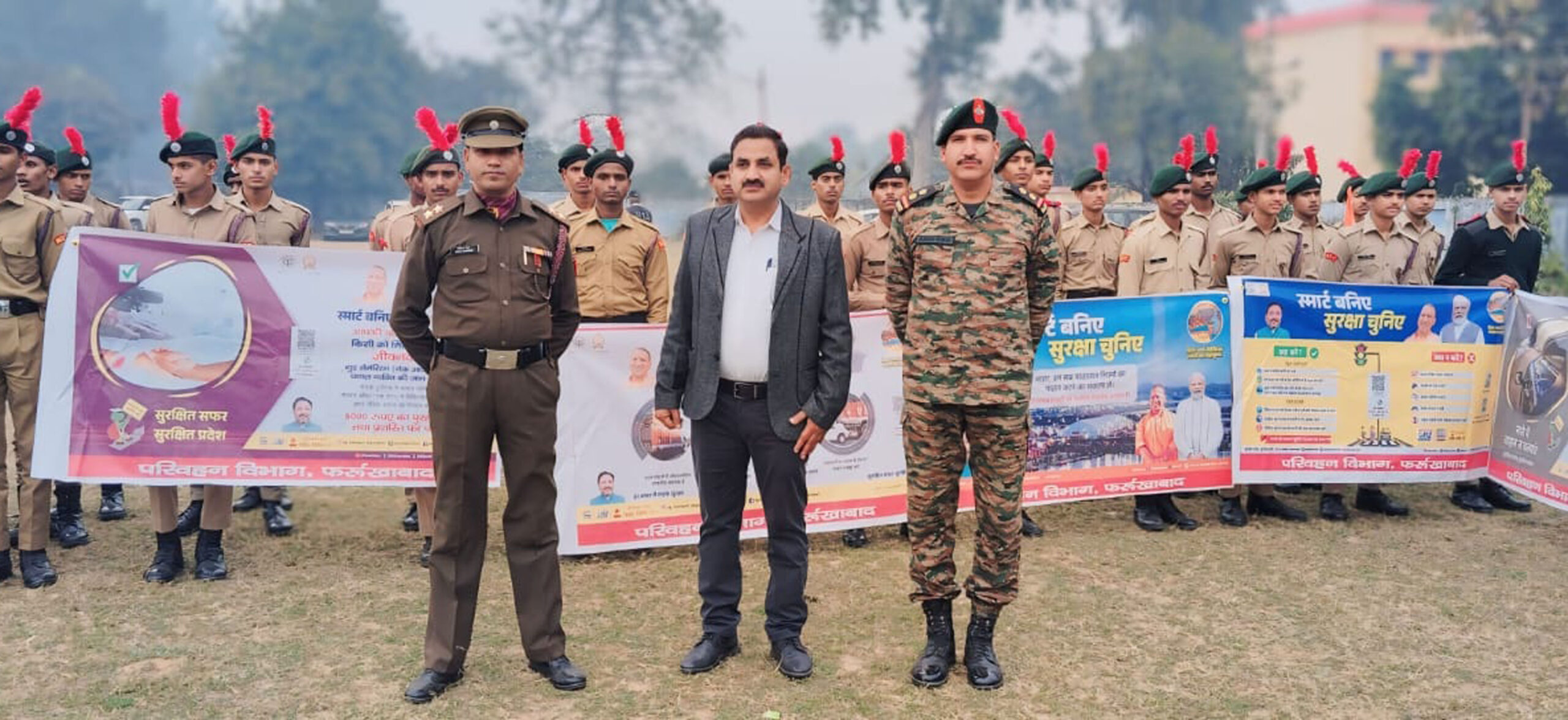 12 यूपी बटालियन एनसीसी फतेहगढ़ के कमान अधिकारी कर्नल अमरजीत सिंह मलिक व ले0 गिरिजा शंकर ने जागरुकत अभियान के तहत एनसीसी कैडेट्स को सडक़ सुरक्षा संबंधी सभी नियमों के पालन करने हेतु प्रेरित किया। उन्होंने बताया कि यह कोई आवश्यक नहीं कि आप वाहन चलाने में माहिर हैं तो आप सडक़ पर सुरक्षित हैं, दुर्घटना कभी भी किसी के साथ भी घटित हो सकती हैं। आजकल चाइनीज मंझे आ रहे है जिसके कारण अगर हेलमेट नहीं लगाए है तो गर्दन भी कटने की घटनाएं सामने आ रही हैं, जिससे बचने की आवश्यकता है। उन्होंने जिला प्रशासन से चाइनीज मंझे को प्रतिबंधित करने की अपील की। साथ ही अपने आपको सुरक्षित रखे। प्रधानाचार्य गिरिजा शंकर ने कहा कि रोड पर चलते समय हमेशा बाये चलें। 18 साल उम्र पूरी होने से पहले मोटर वाहन न चलाएं। दो पहिया वाहन चलाते समय हैलमेट अवश्य लगाएं। सडक़ पर चलते समय हमेशा सतर्क रहें। कभी भी शराब पीकर वाहन न चलाएं। चार पहिया वाहन चलाते समय सीट बेल्ट का प्रयोग करें। रोड पर चलते समय स्टंट बाजी ना करें। वहीं एआरटीओ सुभाष राजपूत द्वारा एनसीसी कैडेट्स को सडक़ सुरक्षा हेतु संवेदनशील रहने के लिए प्रेरित किया। उन्होंने कहा कि सभी छात्र तथा एनसीसी कैडेट्स समाज में जागरूकता फैलाने का कार्य करें, जिससे जनपद में होने वाली दुर्घटनाओं से बचा जा सके। सहायक संभागीय परिवहन अधिकारी सुभाष राजपूत ने सडक़ सुरक्षा संबंधी शपथ दिलायी। इस अवसर पर सूबेदार सुरेश कुमार व सीएचएम कमल उपस्थित रहे।