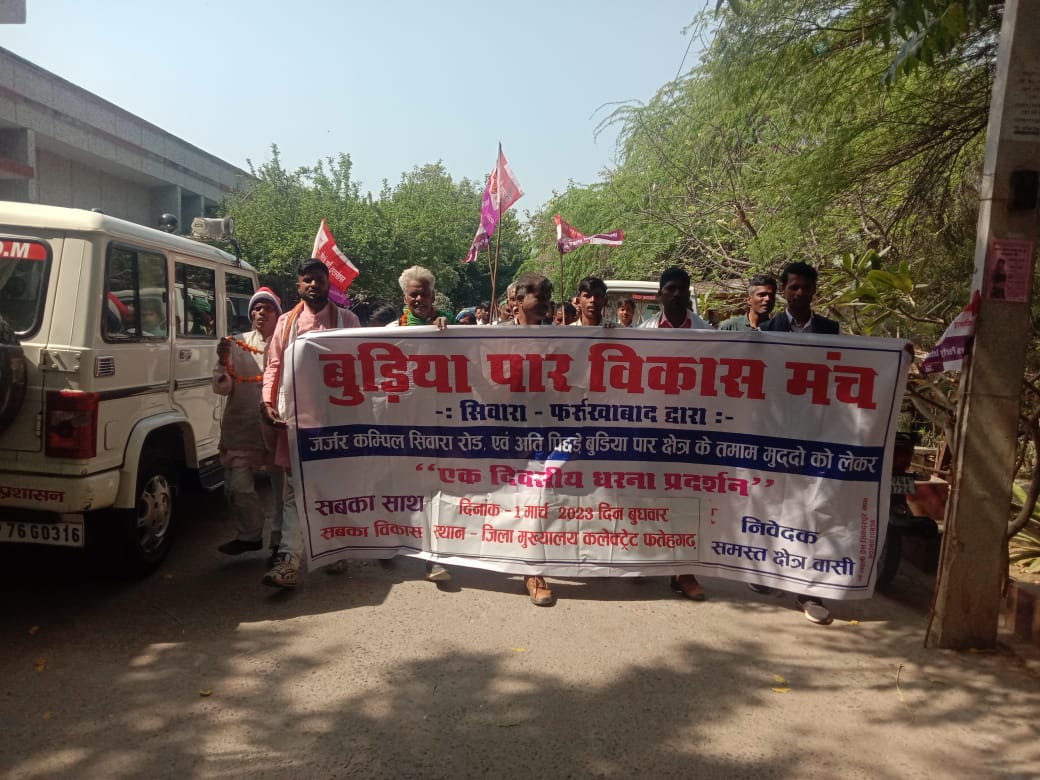 दिये गये पत्र में ग्रामीणों ने कहा कि बुडिय़ा पार्क क्षेत्र गंगा तराई का बहुत बड़ा क्षेत्र है। सरकारें आती-जाती रही, लेकिन इस क्षेत्र की दयनीय दशा पर किसी का ध्यान नहीं गया। इस क्षेत्र की दशा को सुधारने के लिए पिछले दिनों धरना दिया गया था, लेकिन अभी तक सुनवाई नहीं हुई। इसलिए पुन: अवगत करा रहे है। बुडिय़ा पार्क विकास मंच में शामिल कार्यकर्ताओं द्वारा दिये गये ज्ञापन में कम्पिल सिवारा मार्ग के चौड़ीकरण कराने, सिवारा को नगर पंचायत घोषित कराने, बुडिय़ा पार्क क्षेत्र को विकास खण्ड बनाये जाने और जिला मुख्यालय फतेहगढ़ तक बस सुविधा दी जाने, सिवारा में पुलिस थाने का निर्माण, बाढ़ से निपटने के लिए, पुलिया का निर्माण, बुंडीकदम नगला में गंगा घाट के पुल का निर्माण, क्षेत्र में इंटर व डिग्री कालेज खुलवाने, राष्ट्रीयकृत बैंक की शाखा खुलवाने, पशु चिकित्सालय खुलवाने, पक्की हार्डबाजार खुलवाने और बुडिय़ा पार्क क्षेत्र को सभी ग्रामों तक पक्की सड़क तक जोड़े जाने की मांग की गई। संगठन के संयोजक बृजनन्दन शाक्य की अगुवाई में शिव कुमार गौतम, शहजादे, मुनेश कुमार, राजेन्द्र सिंह, सोमवीर, राजीव, विजय, सचिन, ब्रह्मानन्द, अरविन्द गंगवार, अभिषेक शर्मा, श्यामवीर शाक्य, रोहित, रामकिशोर सहित दर्जनों लोग शामिल रहे।