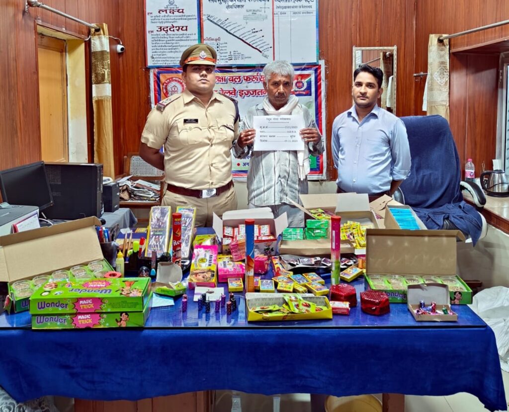 फर्रुखाबाद, समृद्धि न्यूज। टे्रन में पटाखे (ज्वलनशील पदार्थ) लेकर यात्रा करते रेलवे पुलिस ने वृद्ध को पकड़ लिया। उसके पास से भारी मात्रा में पटाखे बरामद हुए। पुलिस ने मुकदमा दर्ज कर आगे की कार्यवाही शुरु कर दी।उप निरीक्षक प्रवीण कुमार द्वारा रेलवे स्टेशन फतेहगढ़ पर दीपावली त्यौहार के मद्देनजर टे्रन में स्कोर्ट पार्टी के साथें चेकिंग अभियान चला रहे थे। चेकिंग के दौरान गाड़ी के कोच में ६२ वर्षीय सुरेश पुत्र स्व0 रामचन्द्र निवासी दुर्गा कालोनी कोतवाली फतेहगढ़ को गिरफ्तार कर लिया। तलाशी में उनके पास से एक बैग में भिन्न-भिन्न प्रकार के पटाखे (ज्वलनशील पदार्थ) भारी मात्रा बरामद हुआ। पुलिस ने पटाखों को जप्त कर सुरेश हिरासत में ले लिया। पुलिस ने वृद्ध के विरुद्ध मुकदमा दर्ज कर आगे की कार्यवाही शुरु कर दी। मामले की जांच उप निरीक्षक प्रवीण कुमार चौकी प्रभारी फतेहगढ़ करेंगे।