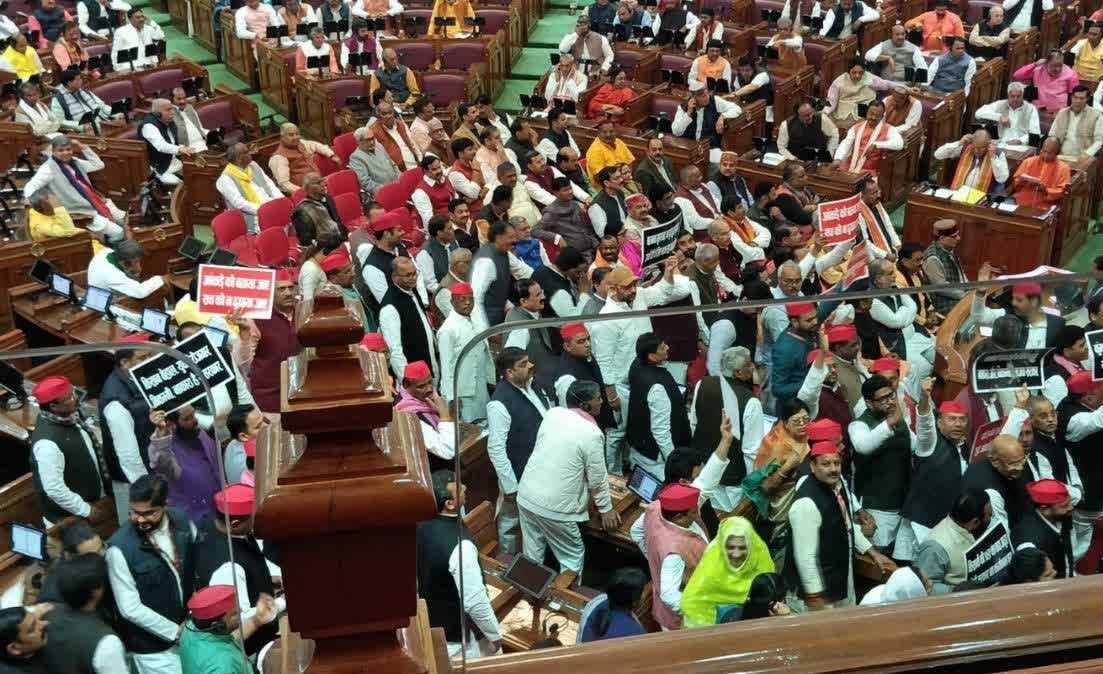बजट सत्र के पांचवें दिन सपा विधायकों ने जमकर की नारेबाजी, सदन में बैठे धरने पर