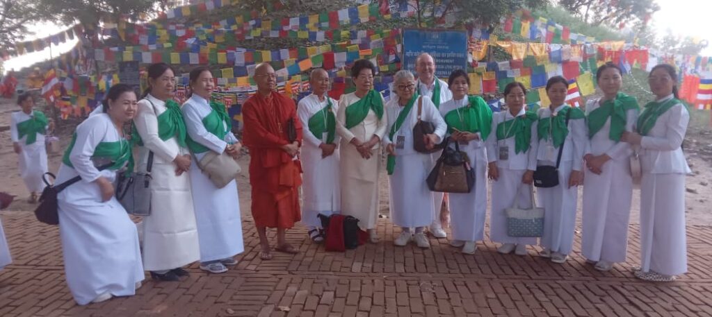 कार्तिक पूर्णिमा के अवसर पर विदेशी बौद्ध अनुयायियों ने स्तूप पर किया पूजा पाठ