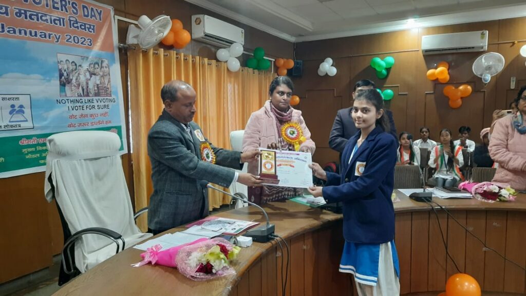 फर्रुखाबाद समद्धि न्यूज़्। 13वें राष्ट्रीय मतदाता दिवस के अवसर पर 25 जनवरी 2023 को फतेहगढ़ कलेक्ट्रेट सभागार में जिला निर्वाचन अधिकारी/जिलाधिकारी की अध्यक्षता में कार्यक्रम का आयोजन किया गया l कार्यक्रम का शुभारंभ मां सरस्वती के चित्र पर दीप प्रज्वलन और पुष्पमाला अर्पित करते हुए किया गया इस अवसर पर मुख्य विकास अधिकारी/ स्वीप नोडल अधिकारी, उप जिला निर्वाचन अधिकारी/ अपर जिलाधिकारी प्रधानाचार्य महादेवी वर्मा राजकीय बालिका इंटर कॉलेज फर्रुखाबाद प्रभारी जिला शिक्षा अधिकारी सुरेश चंद्र पाल, विद्यालय निरीक्षक महेश चंद्र पाल, स्वीप कोऑर्डिनेटर सुधीर कुशवाहा, राजस्व विभाग से सुपरवाइजर लेखपाल , शिक्षा विभाग एवं बाल विकास विभाग से बूथ लेवल अधिकारी गण कार्यालय जिला निर्वाचन अधिकारी स्टॉप,दिव्यांगजन आई कॉन हुकुम सिंह आदि उपस्थित रहेl सरस्वती वंदना एवं स्वागत गीत राजकीय बालिका इंटर कॉलेज फतेहगढ़ की छात्राओं द्वारा प्रस्तुत किया गया l कार्यक्रम में छात्राओं द्वारा नुक्कड़ नाटक की प्रस्तुति दी गई l प्रतियोगिताओं में विजेता प्रतिभागियों, के निर्णायक एवं सहयोगी अध्यापकों तथा विगत चुनाव में श्रेष्ठ कार्य करने वाले बूथ लेवल अधिकारियों के सुपरवाइजर एवं बूथ लेवल अधिकारियों को प्रशस्ति पत्र देते हुए सम्मानित किया गया l निर्णायकमंडल में संजीव कटियार, प्रदीप यादव ,प्रदीप यादव, राजकुमार ,अर्पण शाक्य, जितेंद्र सिंह, सर्वेश शाक्य ,सरिता त्रिवेदी आदि रहे l मुख्य विकास अधिकार ने कहा कि विगत चुनाव में स्वीप टीम के द्वारा श्रेष्ठ कार्य किया गया तथा पूरे जनपद के बूथों पर सुपरवाइजर और बूथ लेवल अधिकारियों के सक्रिय सहयोग से मतदाताओं ने बढ़ चढ़कर हिस्सा लिया तथा मतदान का प्रतिशत बढ़ाया है आगे आने वाले चुनाव में और अधिक सक्रियता से मतदाता जागरूकता अभियान चलाया जाएगा l जिलाधिकारी ने कहा कि आज के इस अवसर पर निश्चित रूप से भारत निर्वाचन आयोग के निर्देशन में राष्ट्रीय मतदाता दिवस की थीम *वोट जैसा कुछ नहीं वोट जरुर डालेंगे हम” को सार्थक करते हुए आगे आने वाले सभी निर्वाचन में सभी मतदाता अपने-अपने बूथों पर शत-प्रतिशत मतदान का लक्ष्य हासिल करते हुए जनपद को अग्रणी बनाने का प्रयास करेंगे l तत्पश्चात जिलाधिकारी द्वारा सभी को मतदाता शपथ ग्रहण कराई गई l अंत में उप जिला निर्वाचन अधिकारी /अपर जिलाधिकारी द्वारा धन्यवाद ज्ञापित किया गया l कार्यक्रम का संचालन स्वीप कोऑर्डिनेटर सुधीर कुशवाहा ने किया l