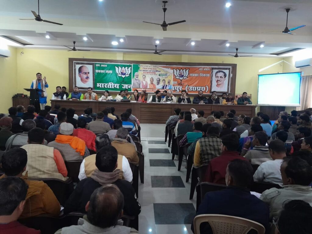 सीतापुर समद्धि न्यूज़्। भाजपा जिला कार्यालय पर एक कार्यशाला का आयोजन किया गया। जिसकी अध्यक्षता भाजपा जिला अध्यक्ष अचिन मेहरोत्रा ने की। इस बैठक के दौरान जिला डाटा प्रबंधन का गठन किया गया। जिलाध्यक्ष अचिन मेहरोत्रा ने बैठक के दौरान कहा कि जिले से पांच सदस्यीय डाटा प्रबंधन कोर का गठन किया गया है। जिसमे प्रमुख रूप से भाजपा जिला उपाध्यक्ष नैमिष रत्न तिवारी,उदित बाजपेई, जितेंद्र मेहरोत्रा,प्रखर जायसवाल जिला संयोजक आईटी विभाग,शुभम पांडेय जिला संयोजक सोशल मीडिया शामिल है। बैठक के दौरान जिलाध्यक्ष अचिन मेहरोत्रा ने कहा कि प्रत्येक भाजपा पदाधिकारी से अनुरोध किया की बूथ स्तर तक कार्यकर्ताओं का डाटा सरल एप पर फीड करवाना है। । कार्यक्रम संयोजक नैमिष रत्न तिवारी ने बताया कि प्रदेश एवं जिले की डाटा प्रबंधन टीम का गठन हो चुका है। इस जिला डाटा प्रबंधन कार्यशाला में मंडल की डाटा प्रबंधन टीम को प्रशिक्षित करके सेक्टर एवं बूथ स्तर तक के कार्यकर्ता को इस सरल ऐप में उसकी डिटेल को भरना है। जिसके अंतर्गत 1 फरवरी से 15 फरवरी तक प्रत्येक मंडल में कार्यशालाओं का आयोजन कर मंडल एवं सेक्टर की टीम को प्रशिक्षित किया जाएगा। जिला मीडिया प्रभारी पवन सिंह ने बताया कि इस मौके पर जिला महामंत्री राजेश शुक्ला,विश्राम सागर राठौर,रोहित सिंह,जिला उपाध्यक्ष नैमिष रत्न तिवारी,संजय मिश्रा,सुधाकर शुक्ला,जिला मंत्री जाया सिंह,मंजू राजवंशी,सुधीर सिंह,कोषाध्यक्ष अजय विश्वकर्मा,जिला अध्यक्ष युवा मोर्चा सचिन मिश्रा,जिला अध्यक्ष महिला मोर्चा कंचन प्रभा पांडेय,जिलाध्यक्ष पिछड़ा वर्ग मोर्चा रामजीवन जायसवाल,जिलाध्यक्ष अनुसूचित मोर्चा रामस्वरूप भार्गव, प्रखर रस्तोगी,मृदुल मिश्रा सहित सभी मंडल अध्यक्ष और भाजपा कार्यकर्ता मौजूद रहें।