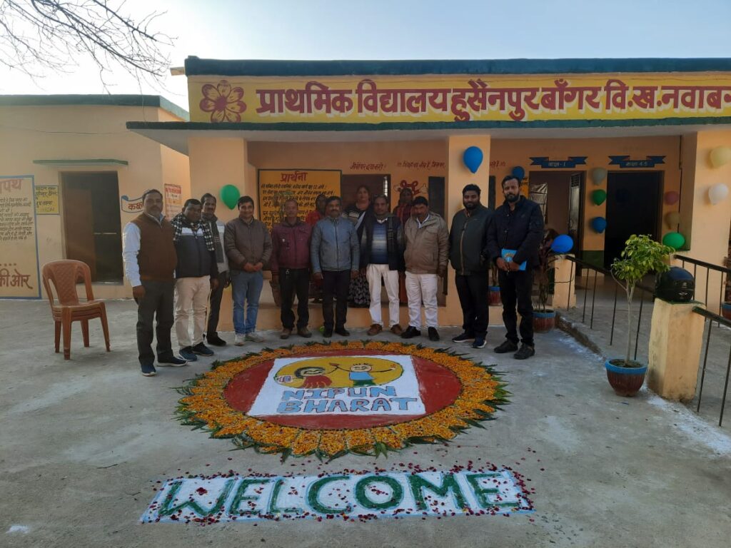 नवाबगंज समृद्धि न्यूज। विकासखंड क्षेत्र के प्राथमिक विद्यालय हुसैनपुर बांगर निपुण भारत निपुण विद्यालय बनाने के लिए न्याय पंचायत स्तर के सभी विद्यालयों से एक एक अध्यापक ने गोष्ठी में प्रतिभाग किया विद्यालय स्टाफ विद्यालय में साज सज्जा के साथ विद्यालयों को सजाया तथा छात्र-छात्राओं को अध्यापकों द्वारा निपुण भारत के टिप्स दिए गए तथा क्षेत्र के सभी अध्यापकों ने निपुण भारत निपुण विद्यालय के लिए युद्ध स्तर पर कार्य करने की बात कही इस मौके पर ए आर पी पंकज यादव बलवीर सिंह सहित सभी ए आर पी तथा विद्यालय स्टाफ से प्राथमिक विद्यालय के प्रधानाध्यापक सैयद आसिफ अली सहायक अध्यापक अनुज कुमार सहायक अध्यापक कुमारी नेहा सहायक अध्यापक आशीष कुमार शिक्षामित्र अखिलेश कुमारी संजीव कुमार शिक्षामित्र सहित सभी लोग गोष्ठी के समय उपस्थित रह|