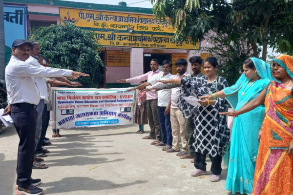 लो टर्न बूथ पर चल रहे मतदाता जागरुकता अभियान के तहत दिलायी गई शपथ
