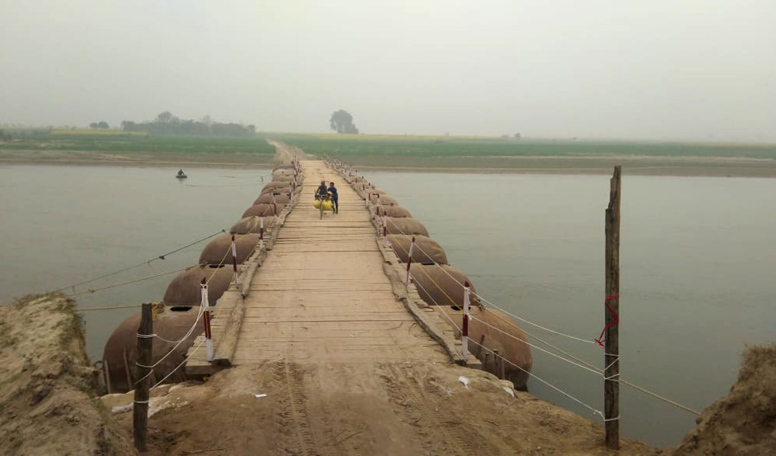 लोहे की तार की जगह रस्सी के सहारे पैंटून पुल