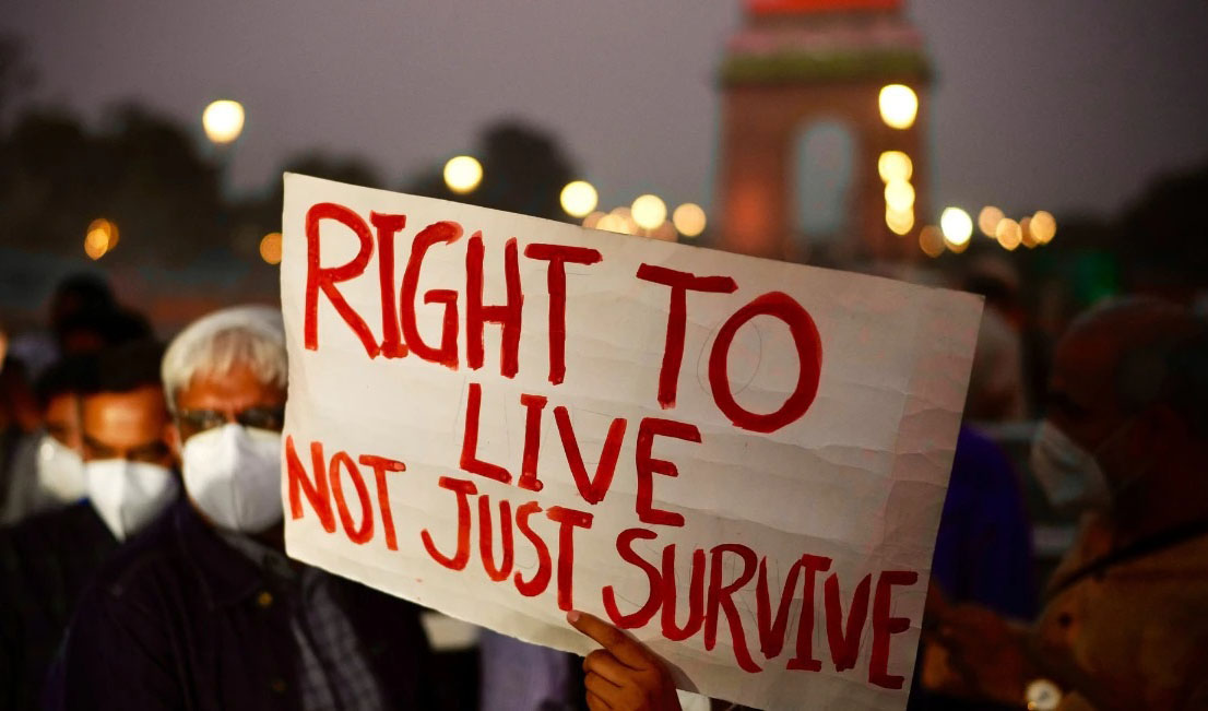 A protester says, "Private monitors show that the air quality index has crossed 999 at several locations. Instead of taking concrete action, authorities are shutting down a peaceful protest. What are… pic.twitter.com/xsiRJOExm5