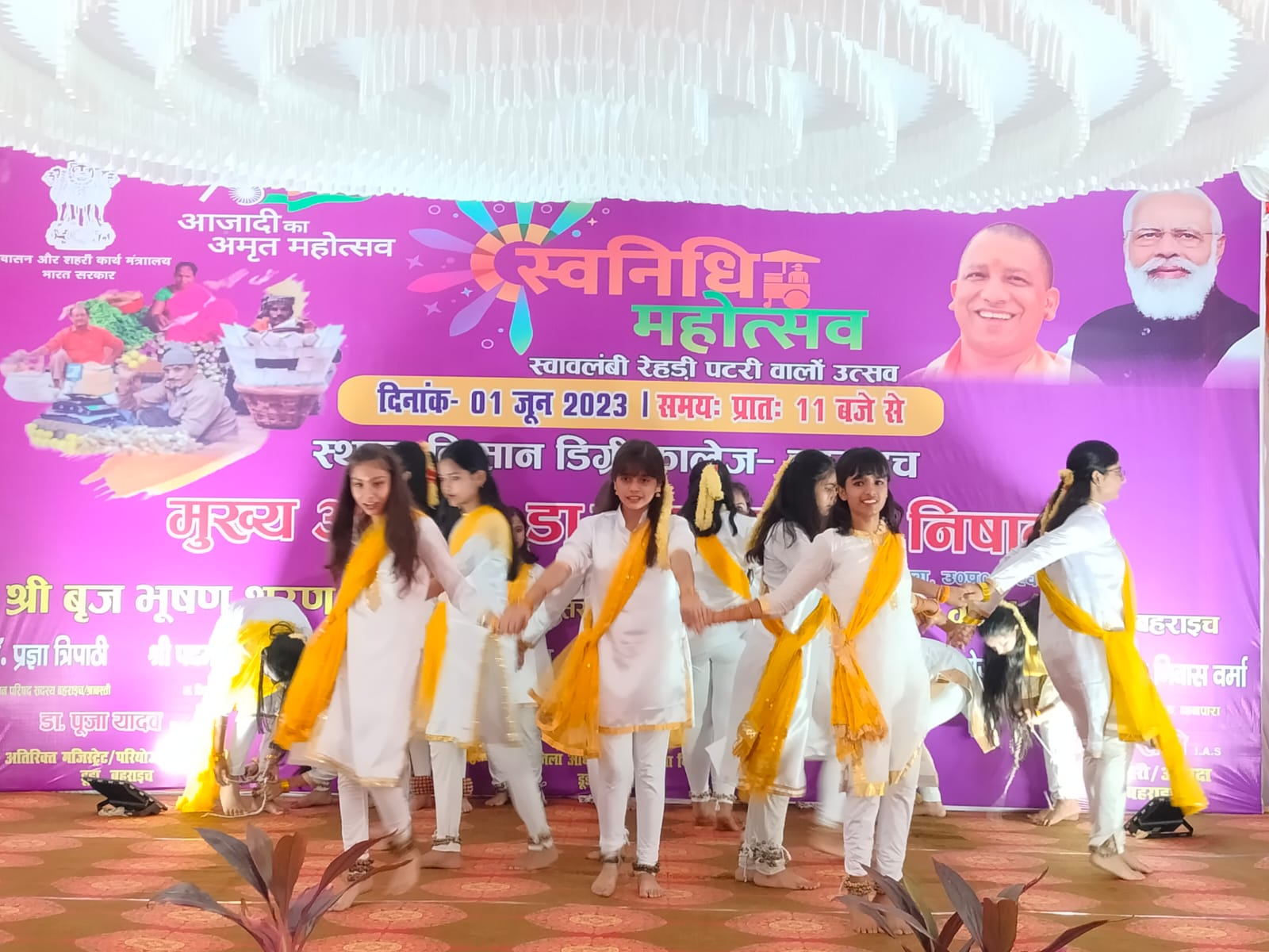 बहराइच समृद्धि न्यूज़ स्व. ठाकुर हुकुम सिंह किसान स्नातकोत्तर महाविद्यालय के जिम्नेजियम हाल में आयोजित पीएम स्वानिधि महोत्सव का मुख्य अतिथि सदर विधायक अनुपमा जायसवाल ने अतिथियों व अधिकारियों के साथ मॉ सरस्वती के चित्र पर माल्यार्पण कर व दीप प्रज्जवलित कर महोत्सव का शुभारम्भ किया।तत्पश्चात् मुख्य अतिथि ने विधायक पयागपुर सुभाष त्रिपाठी के प्रतिनिधि निशंक त्रिपाठी व अन्य अतिथियों, अधिकारियों के साथ महोत्सव में लगाये गये स्टालों का निरीक्षण किया। स्वानिधि महोत्सव में गुरू कृपा डिवाइनग्रेस, यूपीएस कमोलिया, प्राथमिक विद्यालय रंजीतपुर, छात्र-छात्राओं द्वारा रंगारंग सांस्कृतिक कार्यक्रम प्रस्तुत किया गया। जबकि तारा महिला इण्टर कालेज की छात्राओं द्वारा स्वागत गीत प्रस्तुत किया गया। सांस्कृति कार्यक्रम प्रस्तुत करने वाले छात्र-छात्राओं को विधायक पयागपुर के प्रतिनिधि निशंक त्रिपाठी द्वारा नगद रूप से पुरस्कृत किया गया। अपर जिलाधिकारी अनिरूद्ध प्रताप सिंह व डिप्टी कलेक्टर डॉ पूजा यादव ने पीएम स्वानिधि महोत्सव के आयोजन के उद्देश्य पर पर विस्तार से प्रकाश डाला। कार्यक्रम को सम्बोधित करते हुए मुख्य अतिथि विधायक सदर अनुपमा जायसवाल ने कहा कि आजादी का अमृत महोत्सव अन्तर्गत पीएम स्वानिधि महोत्सव मनाया जा रहा है। उन्होंने बताया कि केन्द्र सरकार के कार्यकाल के 09 साल पूर्ण हो रहे है। प्रधानमंत्री नरेन्द्र मोदी की यह योजना 01 जून 2020 में इसका शुभारम्भ किया गया है। इस योजना में गरीब, रेहढ़ी, पटरी वालों, ठेला, खुम्चा इत्यादि प्रकार के रोजगार करने वालों को बैंक 10 हजार रूपये लोन दे रही है जिसको आप किश्तों में बैंको को अदा कर सकते है। उन्होंने यह भी कहा कि अच्छे स्ट्रीट वेन्डर जो अपना लेन-देन समय से अदा कर ले रहे है उनको बैंक द्वारा दूसरी बार 20 हजार रूपये लोन दे रही है। हमारे प्रधानमंत्री का विजन है हर एक गरीब, असहाय, रेहड़ी पटरी वालों को सरकार अपना रोजगार करने के लिए विभिन्न योजनाएं संचालित किये है। हमारी सरकार सबका साथ, सबका विकास के सिद्वान्त पर कार्य कर रही है। कार्यक्रम के दौरान अच्छा लेन-देन करने वाले 10 स्ट्रीट वेन्डर्स तथा 10 कर्मचारियों को डिजिटल लेन-देन के लिए मोटीवेशन करने के लिए मुख्य अतिथि विधायक सदर ने विधायक पयागपुर के प्रतिनिधि व अतिथियों एवं अधिकारियों के साथ प्रशस्ति पत्र प्रदान कर सम्मानित किया। जबकि कार्यक्रम प्रस्तुत करने वाले छात्र-छात्राओं को भी पुरस्कार का वितरण किया गया। इस अवसर पर एडीएम अनिरूद्ध प्रताप सिंह, डीडीओ महेन्द्र कुमार पाण्डेय, नगर मजिस्ट्रेट शालिनी प्रभाकर, शिक्षक, शिक्षकाएं, लाभार्थी, बैक प्रतिनिधि तथा अन्य सम्बन्धित मौजूद रहे। का