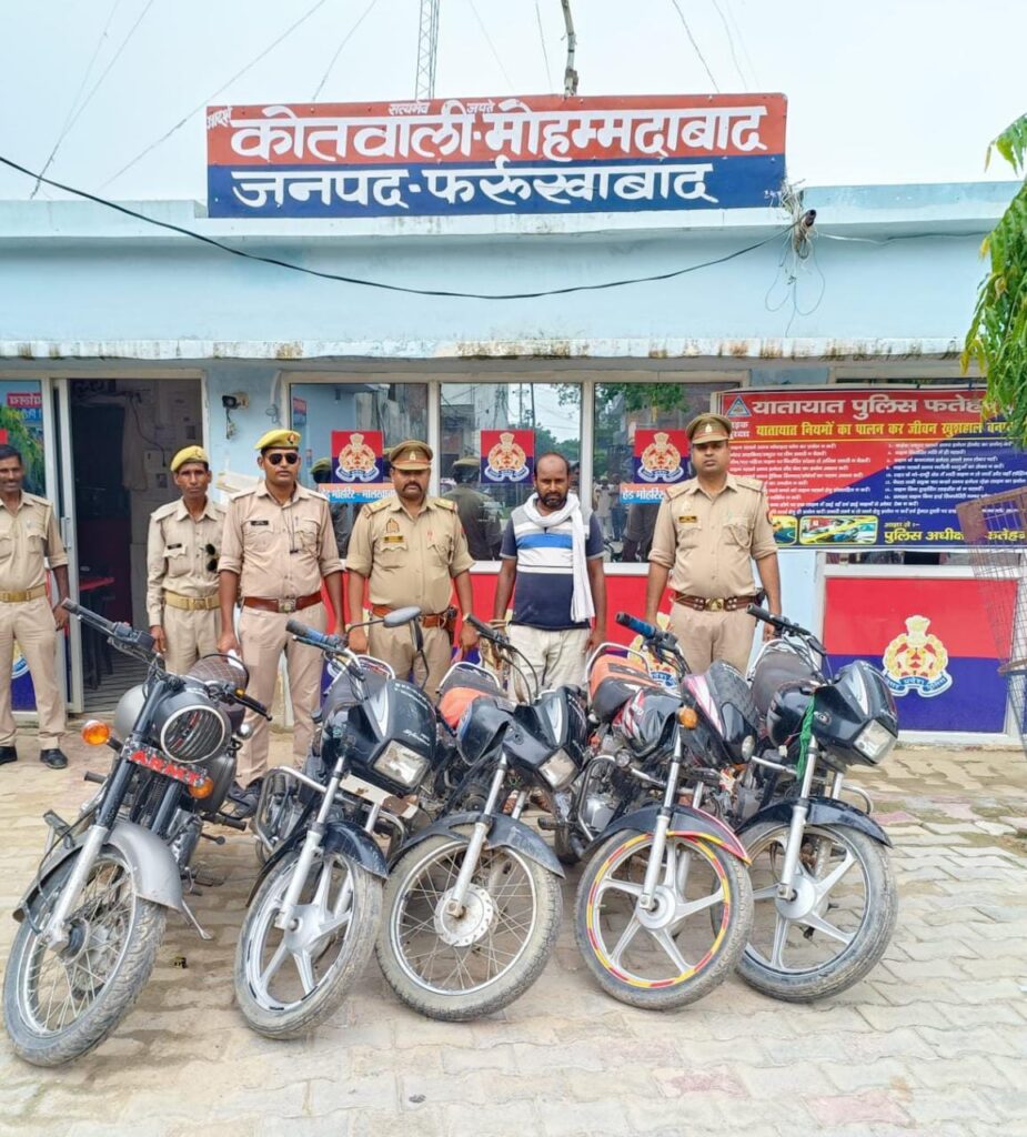फर्रुखाबाद, समृद्धि न्यूज। पुलिस ने मुखबिर की सूचना पर अंतर्राज्यीय मोटर साइकिल चोरी करने वाले गैंग के 1 सदस्य को गिरफ्तार कर लिया। उसकी निशानदेही पर चोरी की कुल 05 बाइके बरामद हुई। पुलिस ने मुकदमा दर्ज कर जेल भेज दिया।