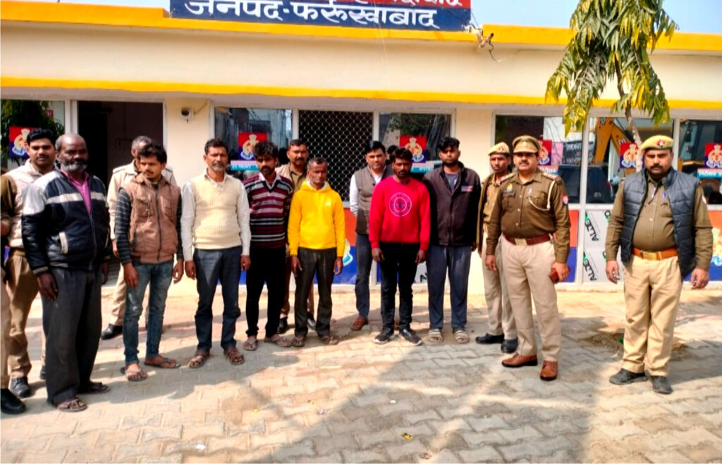 मोहम्मदाबाद कोतवाली प्रभारी मनोज कुमार भाटी, व0उ0नि0 नरेन्द्र सिंह, उ0नि0 चमन सिंह के साथ क्षेत्र में शांति व्यवस्था बनाये रखने के लिए अपराधियों की धरपकड़ अभियान चला रहे थे, तभी मुखबिर की सूचना पर अलग-अलग स्थानों से आठ वारंटियों को गिरफ्तार कर लिया। पूछताछ के दौरान आरोपियों ने अपना नाम वीरपाल पुत्र छदामी उर्फ गयादीन, अरविन्द पुत्र सूरजपाल निवासीगण ग्राम निसाई, संजय राजपूत पुत्र उमाशंकर निवासी ग्राम लुकुटपुरा, अवनीश उर्फ तांत्रिक पुत्र अमर सिंह निवासी लगुनावारी, दीपू उर्फ दीपक कुमार पुत्र मुन्नालाल, अर्जुन पुत्र लालाराम निवासीगण गिहार बस्ती तकीपुर, नर सिंह पुत्र रामसरन निवासी राजीव नगर, मुन्ना पुत्र विजयपाल निवासी दहेलिया खिमसेपुर मोहम्मदाबाद बताया। पुलिस ने आठों आरोपियों को जेल भेज दिया।