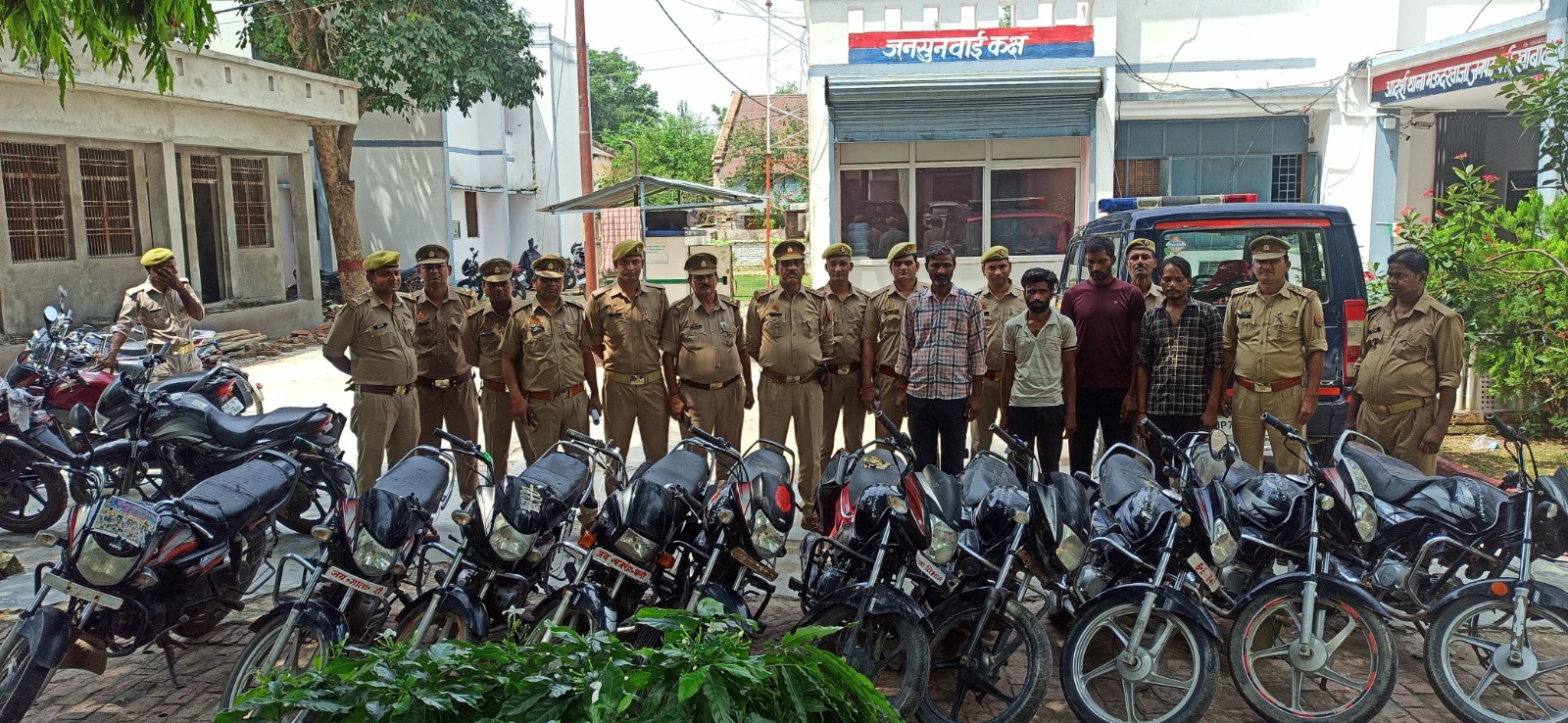 फर्रुखाबाद, समृद्धि न्यूज। अन्तर्जनपदीय बाइक चोर गैंग के चार सदस्यों को पुलिस ने दबोच लिया। आरोपियों की निशानदेही पर चोरी की दस बाइकें बरामद हुई। पुलिस ने आरोपियों के विरुद्ध मुकदमा दर्ज कर जेल भेज दिया।
