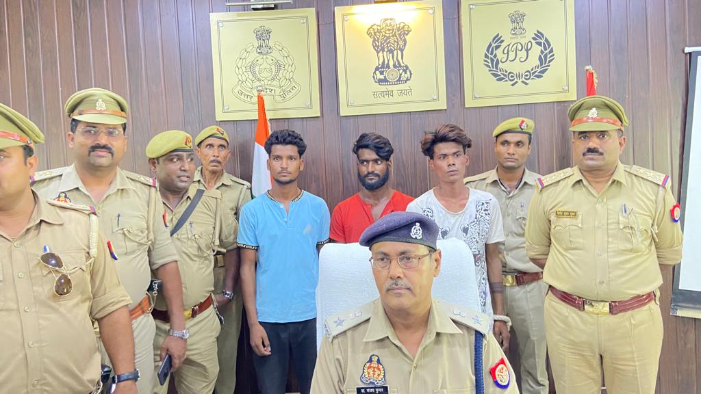 फर्रुखाबाद, समृद्धि न्यूज। पुलिस ने तीन शातिर चोरों को चोरी किये गये 14 फोन सहित गिरफ्तार कर लिया। आरोपियों पर कई मुकदमे दर्ज है। पुलिस ने मुकदमा दर्ज कर सभी को जेल भेज दिया। शुक्रवार को अपर पुलिस अधीक्षक डा0 संजय कुमार ने पुलिस लाइन में वार्ता कर जानकारी देते हुए बताया कि थाना कादरीगेट प्रभारी निरीक्षक विनोद कुमार शुक्ल, पांचाल घाट चौकी इंचार्ज अमित कुमार शर्मा ने अपने हमराहों के साथ गिहार बस्ती लकूला में छापामारी कर तीन शातिर चोरों को गिरफ्तार कर लिया। पूछताछ के दौरान चोरों ने अपना नाम कुंदन उर्फ पिनिया पुत्र शिवरतन, शिवम उर्फ सलमान पुत्र भूरा, गौरव पुत्र रामू बताया। पुलिस को तलाशी के दौरान शातिर पिनिया के पास से 6 मोबाइल फोन, सलमान के पास से 4 व गौरव के पास से भी 4 मोबाइल फोन बरामद हुए। जिनकी कीमत 2 लाख रुपये है। पूछताछ के दौरान आरोपियों ने बताया कि हम लोग भीड़-भाड़ वाले स्थानों पर खड़े होकर मोबाइल चलाने वाले लोगों को ताकते रहते है और मौका लगने पर चुपचाप चोरी कर लेते है। पुलिस के अनुसार आरोपी पिनिया पर 7 मुकदमे, सलमान पर 2 व गौैरव पर 6 मुकदमे दर्ज है। पुलिस ने तीन शातिरों के विरुद्ध मुकदमा दर्ज कर जेल भेज दिया।