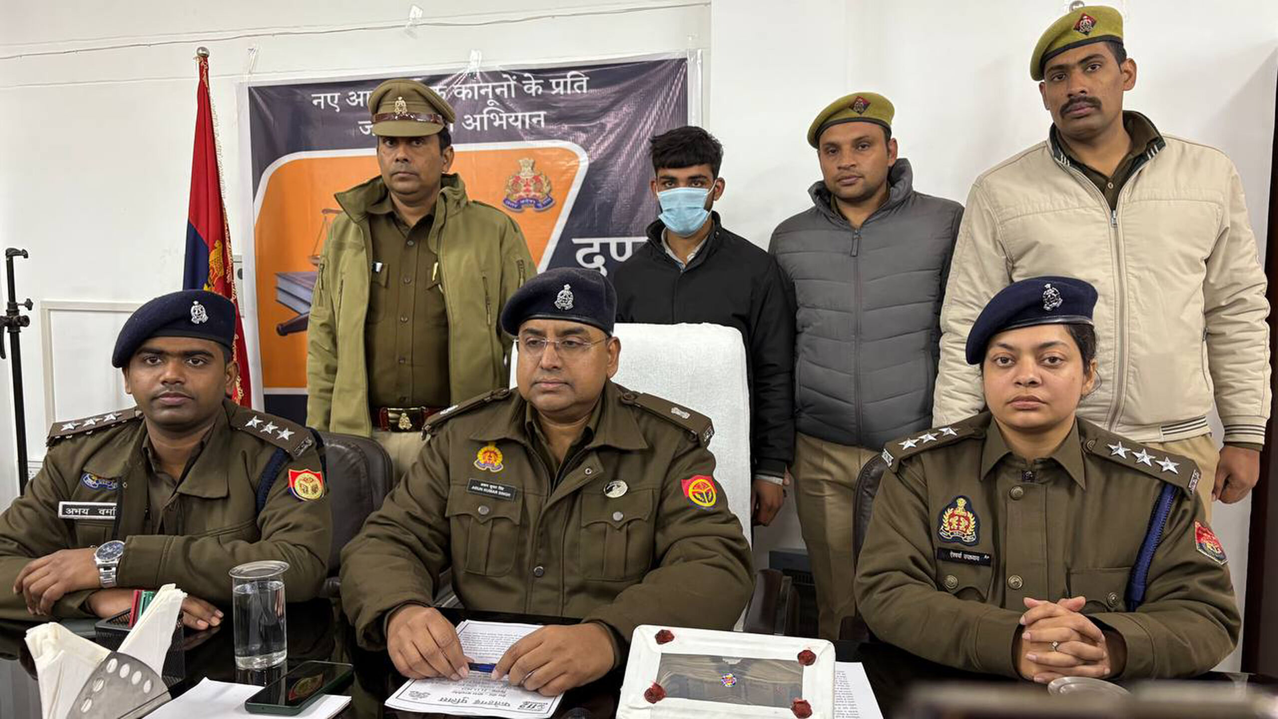 कोतवाली मोहम्मदाबाद के ग्राम सकवाई निवासी राजेश पुत्र कप्तान लाल के साथ विगत 15 दिसंबर को बाइक सवार बदमाशों ने गोली मारकर लगभग 7 लाख की नगदी लूट ली गई थी। पुलिस सीसीटीवी कैमरो व मोबाइल जो की घटनास्थल पर आरोपियों का छूट गया था उसके सहारे तलाश में जुटी थी। घटना के लगभग 6 दिन गुजर जाने के बाद रविवार को शाम 4 बजे पुलिस लाइन सभागार में अपर पुलिस अधीक्षक अरुण कुमार ने घटना का अनावरण किया। अपर पुलिस अधीक्षक ने बताया कि घटना में शामिल कपिल कुमार पुत्र कर्मवीर सिंह निवासी जरौठा बलदेव मथुरा ही मास्टरमाइंड था। जिसे गिरफ्तार किया गया है। पुलिस के अनुसार आरोपियों के पास 1,84,500/- रुपये व एक मोबाइल, ड्राइविंग लाइसेंस व एक पर्स बरामद की है। पकड़ा गया आरोपी कपिल कुमार पूर्व में मंडी रोड़ स्थित इफको में साल 2024 में कार्य करता था। उसी दौरान राकेश कुमार कैश लेने इफको में आता था। पुलिस के अनुसार मास्टरमाइंड कपिल नें अपने छोटे भाई निखिल व चचेरे भाई मनीश सिकरवार पुत्र सोबरन सिंह के साथ लूट की योजना बनायी। मास्टरमाइंड कपिल की योजना अनुसार उसके छोटे भाई छोटे भाई निखिल, चचेरे भाई मनीष ने लूट की घटना को अंजाम दिया। पुलिस के अनुसार गोली मनीष सिकरवार नें चलायी थी। फरार आरोपियों पर 25-25 हजार का इनाम घोषित किया गया है। फरार आरोपी निखिल व मनीष सिकरवार को पुलिस ने अभी तक गिरफ्तार नहीं किया है। अपर पुलिस अधीक्षक अरुण कुमार ने बताया की घटना के मास्टरमाइंड कपिल कुमार को पुलिस ने गिरफ्तार किया गया है। मास्टरमाइंडों पर इनाम घोषित है। जल्द उन्हें भी गिरफ्तार किया जाएगा।