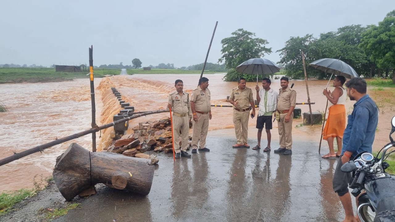 हलिया (मिर्ज़ापुर): ड्रमंडगंज क्षेत्र में हुई भारी बारिश से शुक्रवार को नदी नाले उफान पर आ गए।ड्रमंडगंज क्षेत्र के सेवटी नदी में आई तेज बाढ़ से अमदह गांव में बने रपटा पर तीन फीट ऊपर पानी का तेज बहाव होने से पुलिस ने बैरिकेडिंग लगवाकर ग्रामीणों का आवागमन बंद कराया।सेवटी नदी के रपटा के ऊपर पानी का तेज बहाव होने की जानकारी मिलने पर थानाध्यक्ष ब्रह्मदीन पांडेय पुलिसकर्मियों संग अमदह गांव पहुंचे और रपटा पर बैरिकेडिंग लगवाकर ग्रामीणों का आवागमन बंद कराया। रपटा पर पानी का तेज बहाव होने से करीब चार घंटे ग्रामीणों का आवागमन बाधित रहा। थानाध्यक्ष ब्रह्मदीन पांडेय ने बताया कि सेवटी नदी के अमदह गांव स्थित रपटा पर पानी का तेज बहाव होने से ग्रामीणों की सुरक्षा को देखते हुए बैरिकेडिंग लगवाकर आवागमन बंद कराया गया। बाढ़ की स्थिति सामान्य होने पर शाम को ग्रामीणों आवागमन शुरू करा दिया गया। वहीं बबुरा रघुनाथ सिंह गांव के मछेहुआ नाला में आई बाढ़ से ग्रामीणों का दोपहर तक आवागमन ठप रहा। क्षेत्र में हुई बारिश से सड़कों पर जलजमाव होने से राहगीरों को आवागमन में परेशानी का सामना करना पड़ रहा है कि।