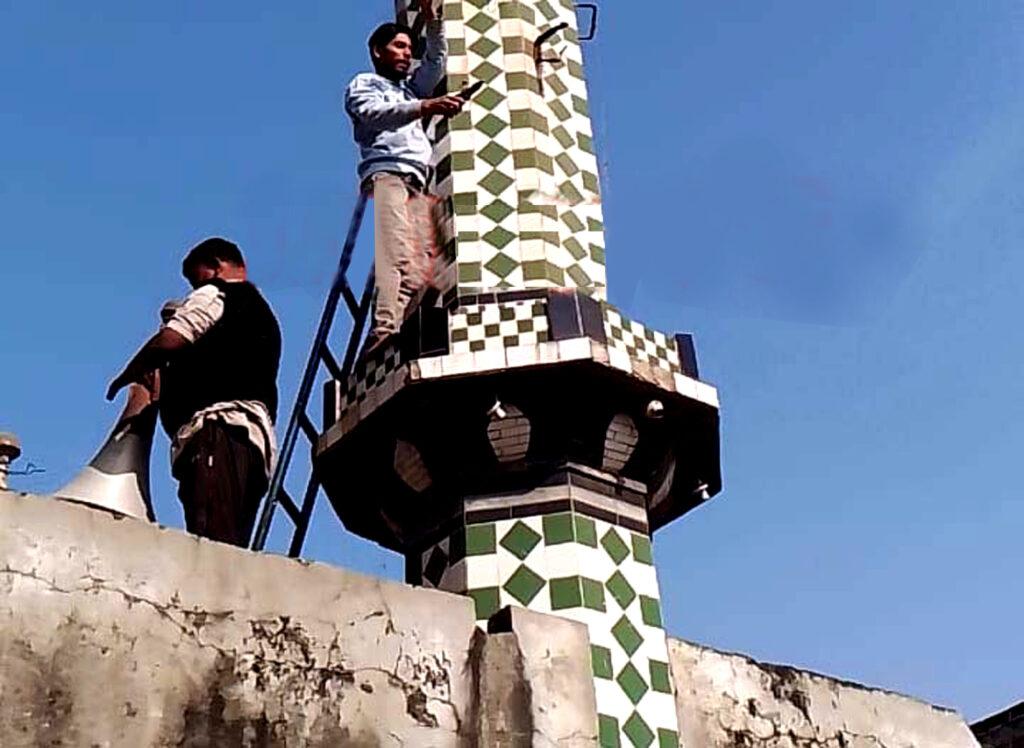 फर्रुखाबाद, समृद्धि न्यूज। गुरुवार की सुबह शासन के निर्देश में चेकिंग अभियान चलाया गया। मंदिर, मस्जिद धार्मिक स्थलों पर एक से अधिक लगे लाउडस्पीकर को उतारा गया। मानक स्वरूप ध्वनि विस्तारक यंत्रों की ध्वनि कम कराई गई। धार्मिक स्थलों पर लाउडस्पीकर बजाने को लेकर छिड़े घमासान के बीच जिले में भी धार्मिक स्थलों से लाउडस्पीकर हटाने का अभियान शुरू हो गया है। पुलिस ने गुरुवार को कई स्थानों पर मस्जिदों से लाउडस्पीकर हटवा दिये। थाना कादरी गेट पुलिस ने लाल दरवाजे व अमेठी में स्थित मस्जिद पर लाउडस्पीकर लगे होने की सूचना पर पहुंची। जिसके बाद पुलिस नें लाउडस्पीकर को उतरवा दिया। थानाध्यक्ष कादरी गेट विनोद कुमार शुक्ला नें बताया कि किसी भी धार्मिक स्थल पर लाउडस्पीकर लगाने के आदेश नही हैं। लिहाजा यदि कोई भी लगाता है तो कार्यवाही की जायेगी।