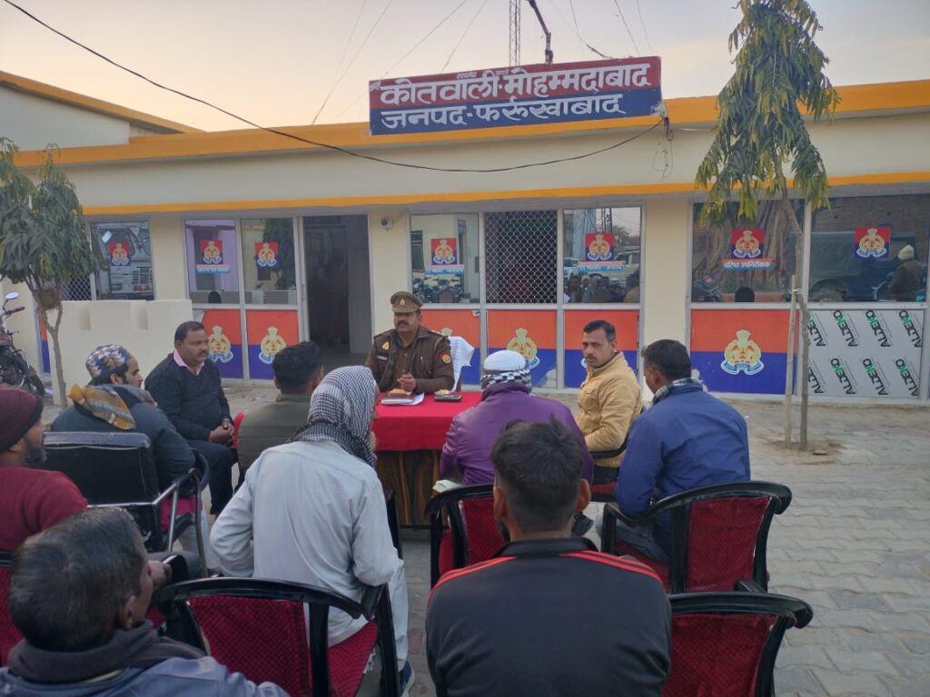 थाना मोहम्मदाबाद पर सभी धर्म के धर्मगुरु एवं संभ्रांत व्यक्तियों की पीस कमेटी की बैठक की गई, कोतवाली प्रभारी ने सभी से अपील की कि यदि किसी प्रकार की अफवाह फैलाये माहौल बिगाडऩे के लिए तो तुरन्त सूचना पुलिस को दे। क्षेत्र में किसी प्रकार का कोई अपराध घटित हो तो उसकी भी जानकारी पुलिस को दी। जिससे अंकुश लगाया जा सकें। सभी धर्मों के लोग अपने-अपने त्योहारों को शांति पूर्ण ढंग से मनाये।