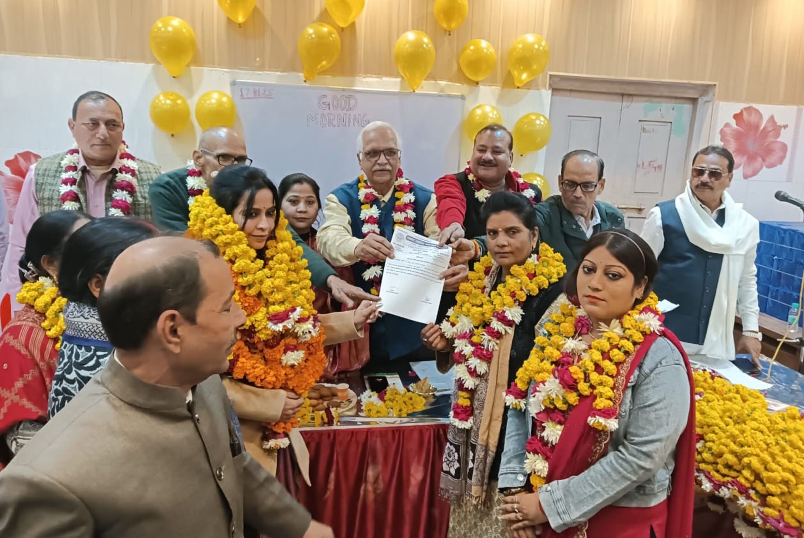 रेलवे रोड स्थित एक होटल के सभागार में नगर अध्यक्ष इखलाक खां ने प्रीती गुप्ता को महिला नगर उद्योग व्यापार मण्डल का अध्यक्ष एवं अनीता शर्मा को चेयरमैन, नेहा मिश्रा को महामंत्री, निशा गुप्ता को कोषाध्यक्ष घोषित किया। साथ ही साप्ताहिक व्यापार मंडल, युवा साप्ताहिक व्यापार मंडल एवं महिला नगर उद्योग व्यापार मंडल के पदाधिकारियों की घोषणा की है। नितिन कुमार गुप्ता को साप्ताहिक व्यापार मंडल का अध्यक्ष, रामू कश्यप को महामंत्री एवं सचिन अग्रवाल को कोषाध्यक्ष अध्यक्ष बनाया गया। आमिर को युवा साप्ताहिक व्यापार मंडल का अध्यक्ष अध्यक्ष, मोहक अग्रवाल को महामंत्री एवं केशव पांडे को कोषाध्यक्ष घोषित किया गया। सभी पदाधिकारियों का फूल मालाओं से स्वागत किया गया। जिलाध्यक्ष सदानंद शुक्ला ने कहा कि सप्ताहिक व्यापार मण्डल के साथ है। हर कीमत पर उनकी दुकानें लगेगी। उन्हें भी संगठित रहने की जरुरत है। नगर अध्यक्ष इखलाक खां ने कहा कि सप्ताहिक व्यारियों के साथ पहले से ही मैं था और आज भी हूं। अंकुर श्रीवास्तव ने कहा कि २४ घंटे व्यापारियों के साथ खड़ा हूं। नगर महामंत्री राकेश सक्सेना ने कहा कि सभी व्यापारियों की समस्याओं के लिए नगर व्यापार मण्डल दमदारी से खड़ा है और जब भी जरुरत पड़ेगी तो व्यापारियों की मदद की जायेगी। जिला उपाध्यक्ष लालू कनौजिया व युवा व्यापार मण्डल के अध्यक्ष श्याम सुंर गुप्ता, संरक्षक ठा0 सर्वेन्द्र सिंह, संरक्षक सरदार जगदीप सिंह, जिला महामंत्री नरेश पालीवाल, महिला व्यापार मण्डल की जिलाध्यक्ष सोनी शुक्ला ने विचार व्यक्त किये। नवनियुक्त महिला व्यापार मण्डल की नगर अध्यक्ष प्रीती गुप्ता ने कहा कि सभी महिलाओं के साथ मिलकर काम करेंगे और उनकी समस्याओं का निराकरण करायेंगे। इस मौके पर रामजी लाल पाठक, राजन राय जौली, पुनीत दुबे, राजू भारद्वाज, कमलेश गुप्ता, राजू गुप्ता, सचिन गुप्ता, आफताब अंसारी, अनीता शर्मा, सीता भदौरिया, आशा मिश्रा, संगीता शर्मा, अर्चना सैनी, ज्योति सैनी, मोहिनी शुक्ला मौजूद रही। संचालन आनंद गुप्ता मुन्ना ने किया।