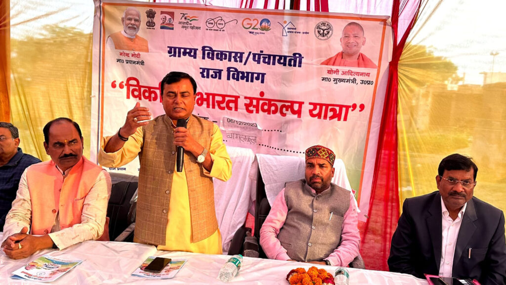 कार्यक्रम में मुख्य अतिथि जिला संगठन प्रभारी शिव महेश दुबे ने कहा विकसित भारत संकल्प यात्रा के इस अभियान में गरीब का कल्याण करना मुख्य उद्देश्य है। प्रधानमंत्री नरेंद्र मोदी के नेतृत्व वाली केंद्र की सरकार हर वर्ग के उत्थान के लिए प्रतिबद्ध है। ग्राम स्तर पर कोई भी व्यक्ति योजनाओं से वंचित न रहे इसके लिए सरकार और संगठन के प्रयास से प्रत्येक जनता तक पहुंचाने की व्यवस्था इस अभियान के माध्यम से हुई है। आम जनमानस तक पहुंचकर सरकारी योजनाएं जिसमें उज्जवला योजना, किसान बीमा योजना, हर घर नल योजना, सौभाग्य योजना, आयुष्मान कार्ड योजना जैसी विभिन्न योजनाओं का लाभ वंचित लाभार्थी को पहुंचाया जा रहा है। कोई भी लाभार्थी वंचित न रह सके इसके लिए नीचे तक सरकारी योजनाओं को पहुंचाया जा रहा है। प्रधानमंत्री नरेंद्र मोदी ने 2047 तक भारत को विकसित करने का संकल्प लिया है। भाजपा जिला अध्यक्ष रूपेश गुप्ता ने कहा केंद्र व राज्य सरकार गरीबों के उत्थान के लिए निरंतर प्रयासरत है। जब देश के आम जनमानस का विकास होगा तभी भारत विकसित होगा। सरकार के प्रयासों से देश की आधी आबादी को सशक्त करने का कार्य किया जा रहा है। महिलाओं के सशक्तिकरण के लिए विभिन्न योजनाएं सरकार द्वारा संचालित की जा रही है। 2027 तक भारत को दुनिया की तीसरी सबसे बड़ी अर्थव्यवस्था में शुमार करने के लिए निरंतर प्रयास जारी है। 26 जनवरी 2024 तक यह कार्यक्रम जारी रहेगा। इस अवसर पर जिला विकास अधिकारी श्याम तिवारी, खंड विकास अधिकारी बलराम सिंह, जिला महामंत्री डीएस राठौर, जिला मीडिया प्रभारी शिवांग रस्तोगी आदि मौजूद रहे कार्यक्रम का संचालन सत्यनारायण सिंह ने किया।