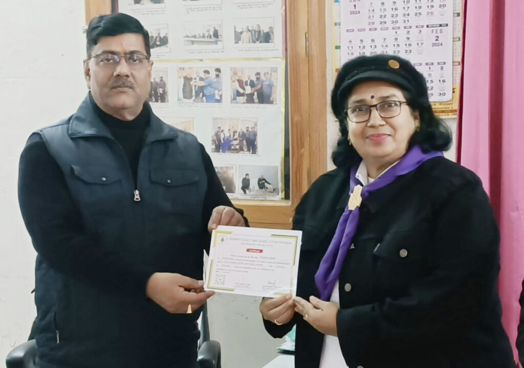 फर्रुखाबाद, समृद्धि न्यूज। उत्तर प्रदेश भारत स्काउट और गाइड के प्रादेशिक कार्यालय गोल मार्केट महानगर लखनऊ के प्रादेशिक प्रशिक्षण आयुक्त स्काउट अरविंद कुमार श्रीवास्तव ने जनपद की पुष्पसिंह को शीतलाखेत जनपद अल्मोड़ा उत्तराखंड में संपन्न जिला आयुक्त बुलबुल का प्रशिक्षण प्राप्त करने हेतु बेसिक कोर्स कमिश्नर का सर्टिफिकेट उपलब्ध कराया तथा बधाई देते हुए अपने जनपद की स्काउटिंग आंदोलन को आगे बढ़ाने में लगातार सहयोग की अपेक्षा की। प्रादेशिक कार्यालय से सचिव आनंद सिंह रावत, प्रदेशिक संगठन आयुक्त स्काउट हीरालाल यादव, प्रदेशिक संगठन आयुक्त गाइड कामिनी श्रीवास्तव, सहायक प्रदेशिक संगठन आयुक्त गाइड प्रज्ञा सिंह ने इस उपलब्धि के लिए बधाई दी। इस अवसर पर जनपद से जिला स्काउट मास्टर सुधीर कुशवाहा, स्काउट मास्टर राजकुमार, गौरव शाक्य उपस्थित रहे।