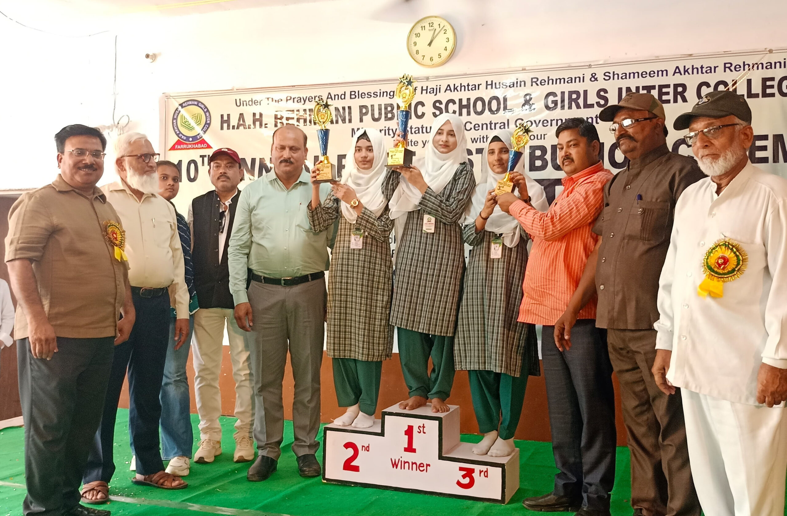 फर्रुखाबाद, समृद्धि न्यूज। हाजी अख्तर हुसैन रहमानी गर्ल्स इण्टर कॉलेज में 10वीं वार्षिकोत्वसव आयत बड़ी धूमधाम से मनाया गया। कार्यक्रम की शुरूआत स्कूल प्रार्थना से हुई। साथ ही बच्चों ने रंगारंग कार्यक्रम प्रस्तुत किये। जिसमें स्व्च्छता अभियान, पढ़ाई वाली कव्वाली और आनन्दी बाई आदि कार्यक्रम किये गये। कार्यक्रम के मुख्यअतिथि नोडल अधिकारी व श्रम विभाग के कोआर्डिनेटर सैय्यद रिजवान अली ने मौजूद रहे।