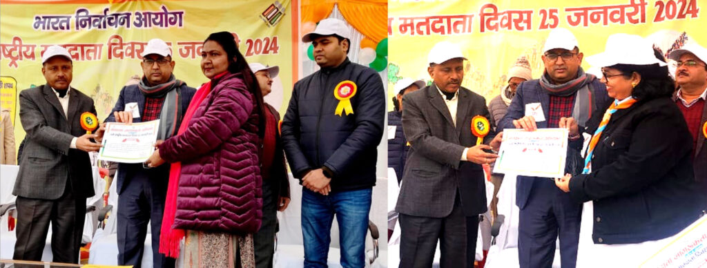 फर्रुखाबाद, समृद्धि न्यूज। 14वें राष्ट्रीय मतदाता दिवस शहर में मानव श्रृंखला बनाकर रैली निकाली गई। रैली का आयोजन टाउन हाल से शुरु होकर फतेहगढ़ स्टेडियम पहुंचा। जहां जिलाधिकारी ने विशाल मतदाता जागरुक अभियान रैली पर विचार व्यक्त किये और शिक्षक-शिक्षिकाओं व स्काउट गाइड एवं भाग लेने वाले प्रतिभागियों को सम्मानित किया। 14वें राष्ट्रीय मतदाता दिवस की थीम वोट जैसा कुछ नहीं, वोट जरुर डालेंगे हम पर आधारित स्वीप के अन्तर्गत विविध कार्यक्रमों का आयोजन किया गया। अध्यक्षता जिला निर्वाचन अधिकारी डीएम संजय कुमार सिंह ने की। साथ ही सभी को मतदाता शपथ दिलायी गई। विभिन्न विद्यालयों, महाविद्यालयों के छात्र-छात्राओं द्वारा विभिन्न कार्यक्रमों और प्रतियोगिताओं में स्वीप कार्यक्रम के दौरान प्रचार-प्रसार करने, बूथ लेबिल अधिकारियों व सुपर वाइजर को प्रशस्ति पत्र देकर सम्मानित किया गया। दिव्यांग मतदाताओं तथा दिव्यांग बीएलओ को भी सम्मानित किया गया।