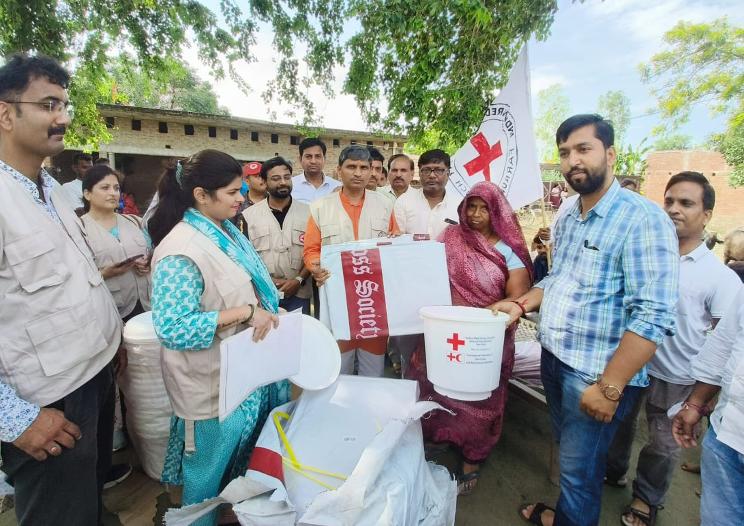रेड क्रास सोसाइटी द्वारा रामानंद कटियार ने बाढ़ पीडि़तों को बांटी राहत सामग्री
