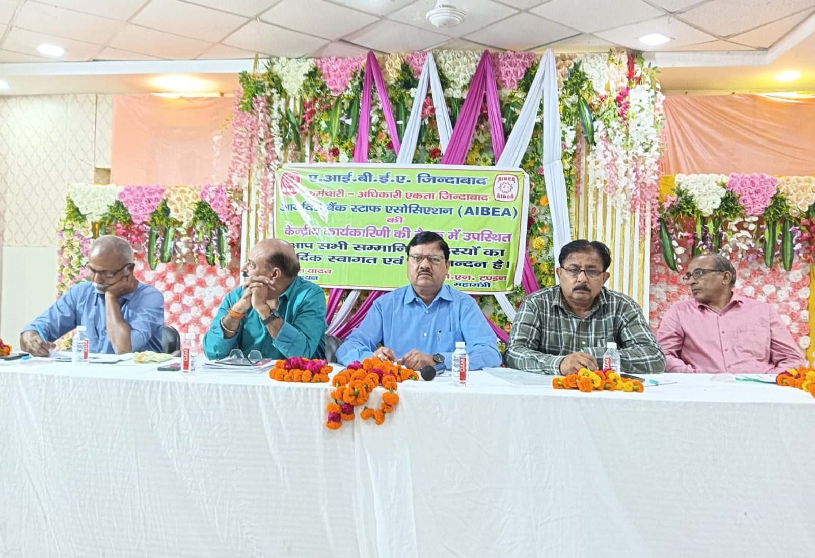 बैठक में आर्यावर्त बैंक अधिकारी एसोसिएशन की केंद्रीय इकाई के महामंत्री सुधीर सक्सेना, आर्यावर्त बैंक स्टाफ एसोसिएशन के अध्यक्ष कामरेड उमेश यादव, महामंत्री कामरेड ओएन टंडन, अरूणाभ अरुणेश, रवि श्रीवास्तव, हर्षित दीक्षित, पीके सक्सेना, हिमांशु गुप्ता, मनोज शर्मा इत्यादि ने भाग लिया। कार्यकारिणी के सेवानिवृत्ति साथियों का केंद्रीय इकाई द्वारा शॉल व माला पहनाकर स्वागत किया। एवं महामंत्री के समक्ष समस्यायें रखी गई। जिसका निराकरण हेतु आश्वासन दिया गया।