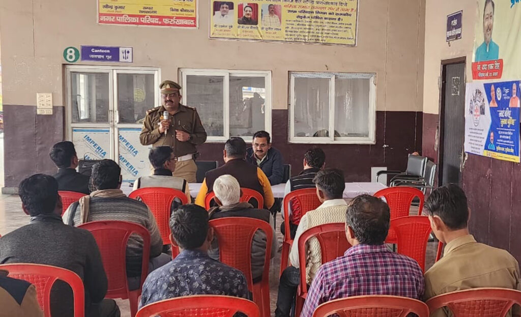 फर्रुखाबाद, समृद्धि न्यूज। जिलाधिकारी डॉ0 वी0के0 सिंह के निर्देशन में बस स्वामियों, ऑटो, टेंपो चालकों तथा परिवहन निगम के चालकों व परिचालकों को सडक़ सुरक्षा के प्रति जागरूक करने हेतु परिवहन निगम के बस अड्डा परिसर में कार्यक्रम आयोजित किया गया। प्रतिभागियों को संबोधित करते हुए यातायात प्रभारी रजनेश कुमार द्वारा यातायात नियमों का पालन करने तथा अपनी लेन में वाहन चलाने हेतु निर्देशित किया गया, ताकि जनपद को ट्रैफिक जाम से मुक्त किया जा सके। इसके अतिरिक्त सभी से दो पहिया वाहन चलाते समय हेलमेट का प्रयोग करने, चार पहिया व अन्य वाहन चलाते समय सीट बेल्ट का प्रयोग करने, नशा नींद तथा तेज रफ्तार में वाहन न चलाने तथा वाहन चलाते समय मोबाइल का प्रयोग न करने की अपील की गई।