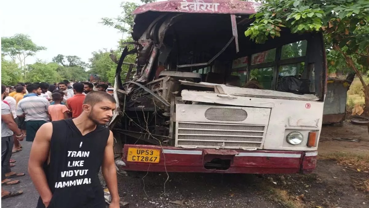देवरिया जिले में गुरुवार को रोडवेज बस और ट्रक की टक्कर में दो लोगों की मौत हो गई जबकि 14 अन्य घायल हो गए. बता दें कि उत्तर प्रदेश राज्य सड़क परिवहन निगम की बस मदनपुर-बरांव मार्ग से होकर आजमगढ़ जा रही थी. बहसुआं गांव के निकट बस को कपरवार की ओर से आ रहे एक अनियंत्रित ट्रक ने टक्कर मार दी. इस हादसे में बिरवापुर गांव निवासी युवक बिट्टन (20) और एक अज्ञात महिला की मौत हो गई.