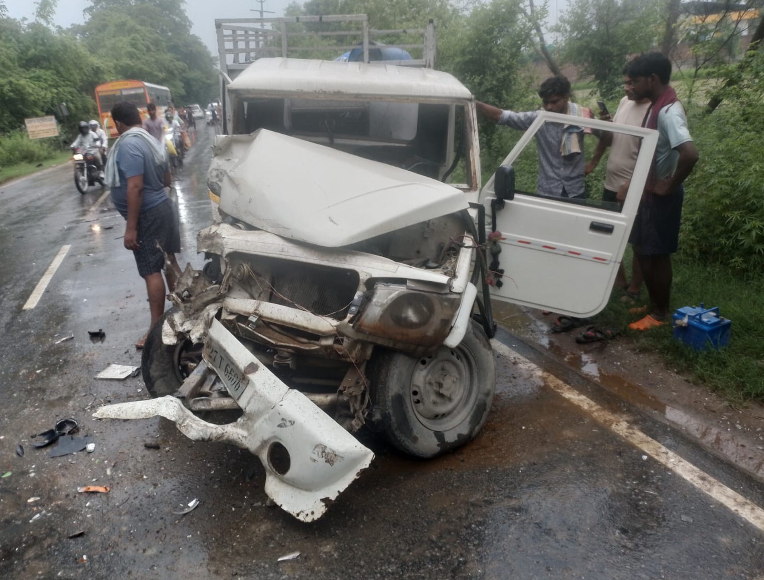 जानकारी के अनुसार फर्रुखाबाद-बदायूं हाईवे पर मोहद्दीपुर पेट्रोल टंकी के निकट बदायूं से इलाहाबाद जा रही रोडवेज बस संख्या यू.पी. 78जेएन515 के चालक बृजेश निवासी जोगराजपुर जिला कौशांबी ने ट्रक को ओवरटेक करते समय जैनापुर से गुजरपुर दूध लेने जा रही पिकअप संख्या यू.पी.27टी6606 को टक्कर मार दी। जिससे पिकअप चालक विकास निवासी जैनापुर थाना राजेपुर गंभीर रुप से घायल हो गया। सूचना पर पहुंची पुलिस ने पिकअप चालक को सामुदायिक स्वास्थ्य केंद्र राजेपुर में भर्ती करवाया। ग्रामीणों की सूचना पर पहुंचे थाना अध्यक्ष रणविजय सिंह ने घायल विकास को सामुदायिक स्वास्थ्य केंद्र राजेपुर में भर्ती करवाने के साथ दोनों वाहनों को अपने कब्जे में ले लिया। सामुदायिक स्वास्थ्य केंद्र में घायल पिकअप चालक का उपचार चल रहा है।