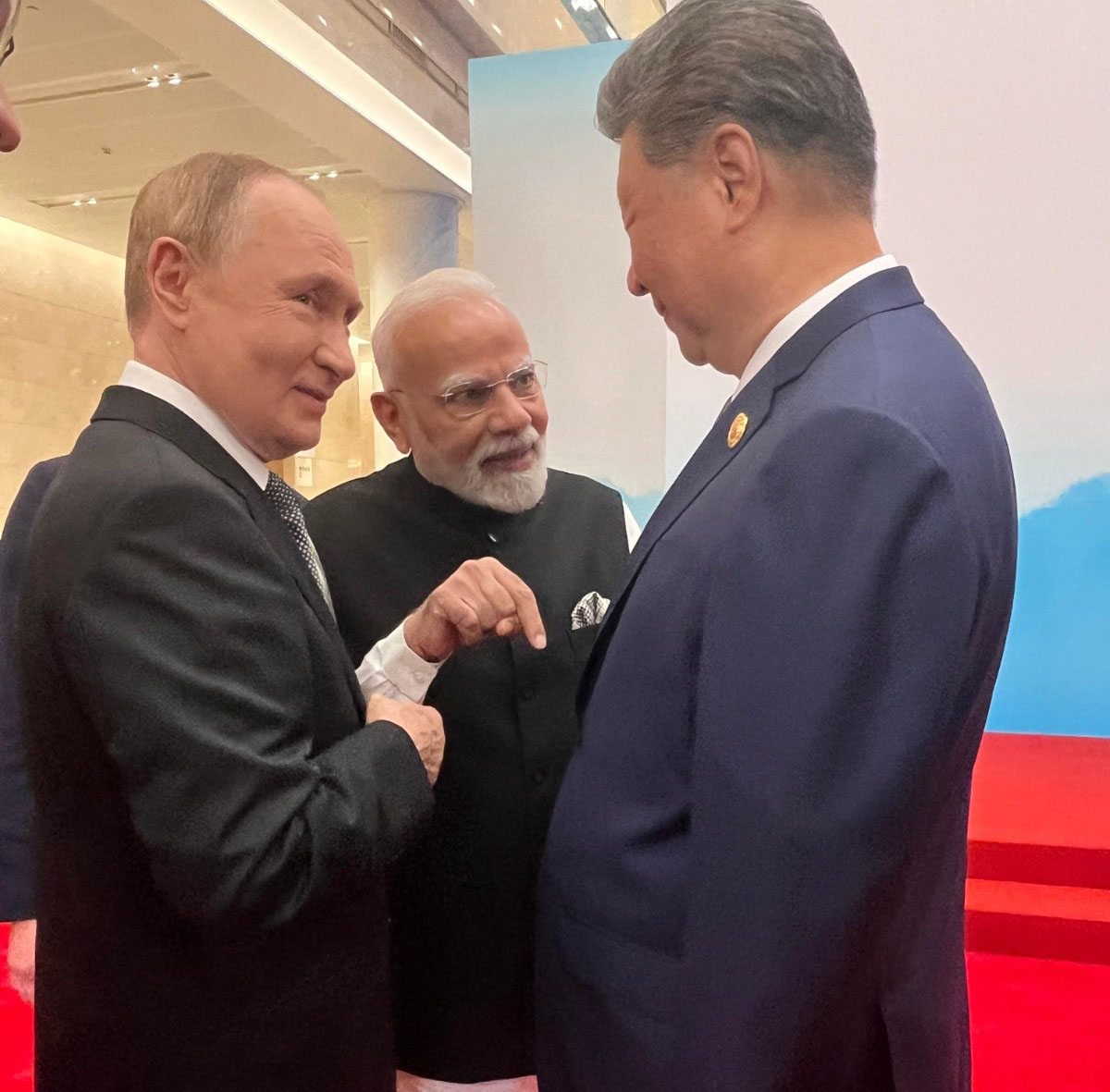 प्रधानमंत्री नरेंद्र मोदी ने ट्वीट किया, तियानजिन में बातचीत जारी! एससीओ शिखर सम्मेलन के दौरान राष्ट्रपति पुतिन और राष्ट्रपति शी के साथ विचारों का आदान-प्रदान।