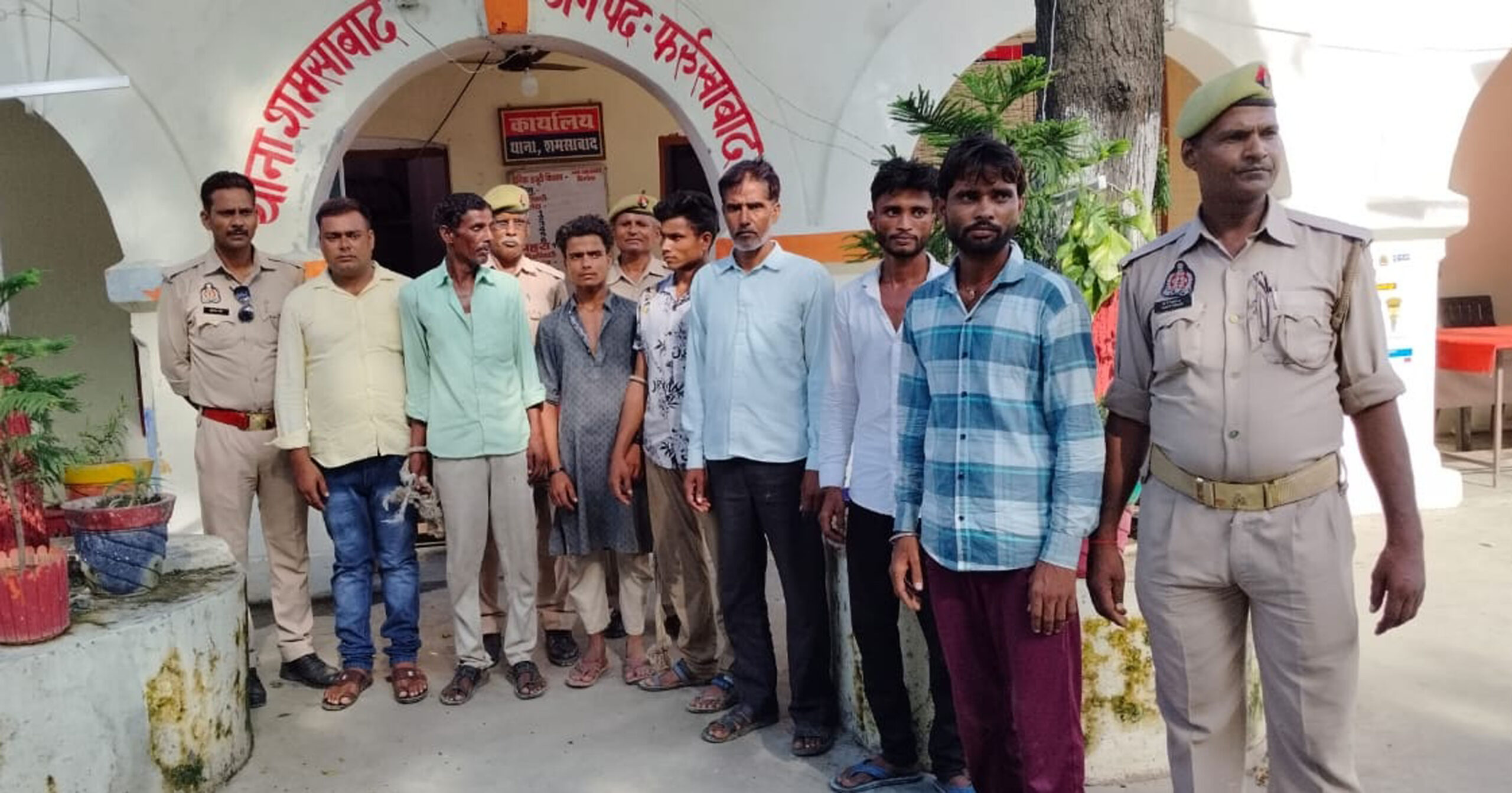 शमशाबाद, समृद्धि न्यूज। थाना शमशाबाद पुलिस ने बृजेश पुत्र उमेश जाटव निवासी रजलामई थाना शमशाबाद, शिवम पुत्र उमेश चंद्र जाटव निवासी रजलामई थाना शमशाबाद, शंभू दयाल पुत्र राम आसरे निवासी नगला सेठ थाना शमशाबाद, अचल प्रकाश पुत्र शेर सिंह निवासी बरई थाना शमशाबाद, कश्मीर पुत्र पंछी लाल निवासी मोहल्ला चौखंडा थाना शमशाबाद, सानू पुत्र इकरार निवासी मोहल्ला घटियापुर शमशाबाद, इरफान पुत्र इकरार निवासी मोहल्ला घटियापुर थाना शमशाबाद आदि उपरोक्त अभियुक्तगणों को धारा 170 बीएनएस में गिरफ्तार कर न्यायालय कायमगंज के समक्ष पेश किया गया।
