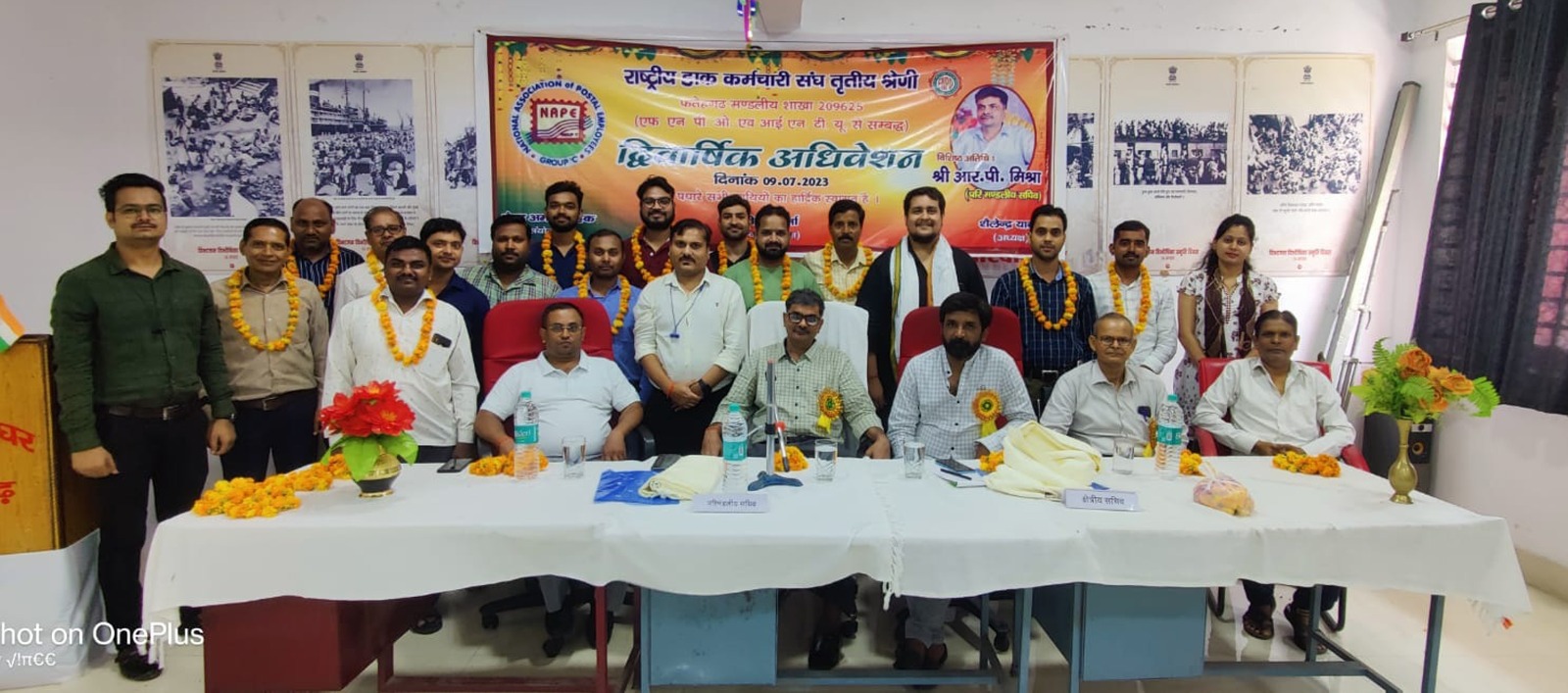 फर्रुखाबाद, समृद्धि न्यूज। राष्ट्रीय डाक कर्मचारी संघ तृतीय श्रेणी फतेहगढ़ मंडल व फर्रुखाबाद का द्विवार्षिक अधिवेशन मनोरंजन क्लब फतेहगढ़ में प्रधान डाकघर परिसर में मंडलीय सचिव आर.पी.मिश्रा व क्षेत्रीय सचिव शिवकिशोर की उपस्थिति में सम्पन्न हुआ। फर्रुखाबाद व कन्नौज के डाक कर्मचारियों ने बढ़-चढ़कर भाग लिया। परिमंडलीय सचिव ने न्यू पेंशन स्कीम के तहत गहन नाराजगी व्यक्त करते हुए कहा कि यह कर्मचारियों के हित में नहीं है। उन्होंने कर्मचारियों को एक जुट होने का संदेश दिया। संघ के द्विवार्षिक चुनाव में पदाधिकारियों का चयन किया गया। अध्यक्ष शैलेंद्र यादव, सह अध्यक्ष सलाम मोहम्मद, सचिव सैय्यद अमानुल हक, उप सचिव विकास गुप्ता, कोषाध्यक्ष विनीत मिश्रा, संगठन सचिव उदय प्रताप सिंह, आडीटर ऋषभ कटियार को बनाया गया। संचालन विकास गुप्ता ने किया। इस मौके पर शैलेंद्र प्रताप सिंह, सोमेश वर्मा, तुषार वर्मा, ऊषा गुप्ता, प्रदीप कुमार, अरुन कुमार सहित करीब आधा सैकड़ा कर्मचारियों ने भाग लिया।