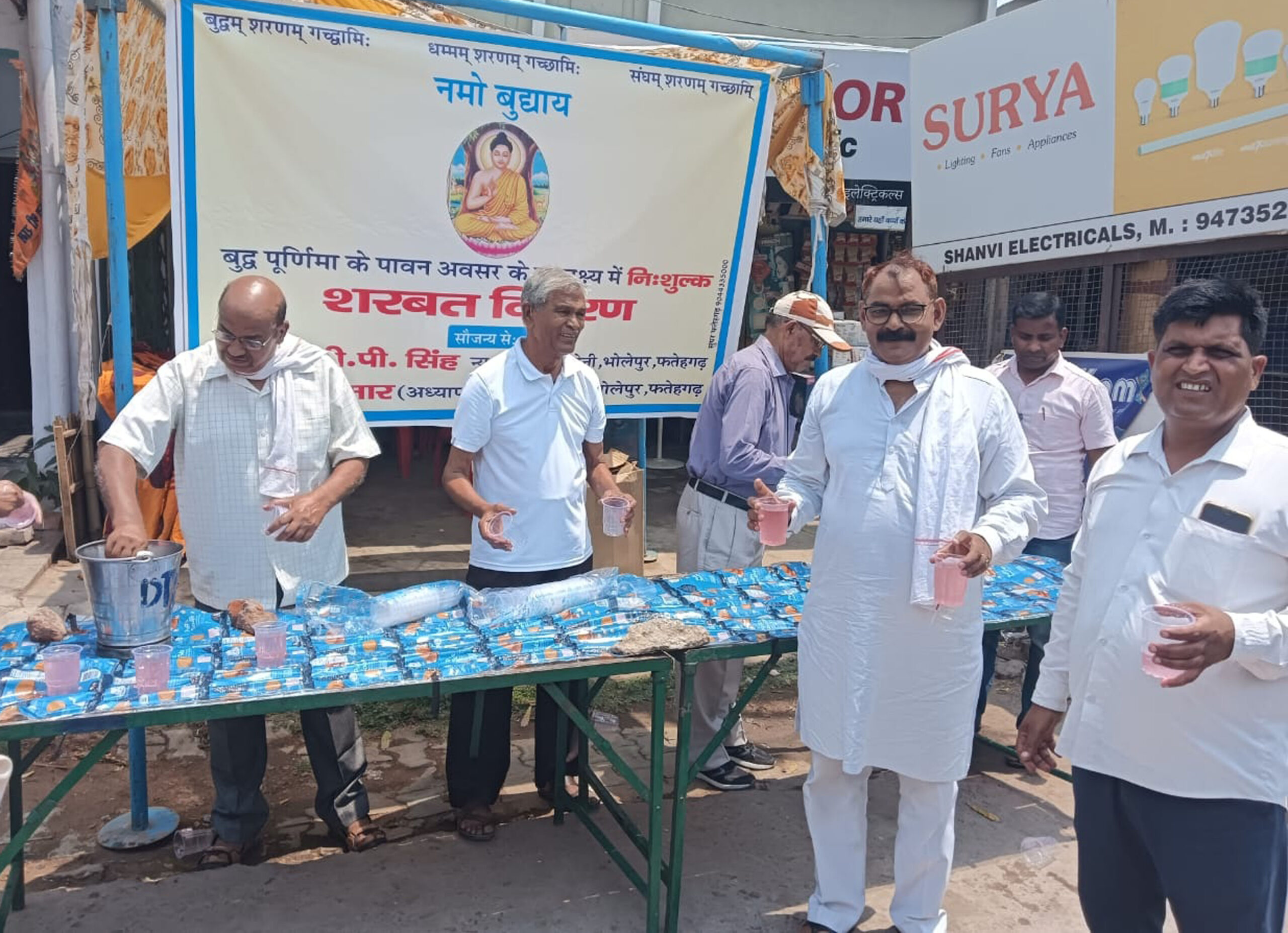 बुद्ध जयंती पर स्टॉल लगाकर वितरित किया गया शरबत
