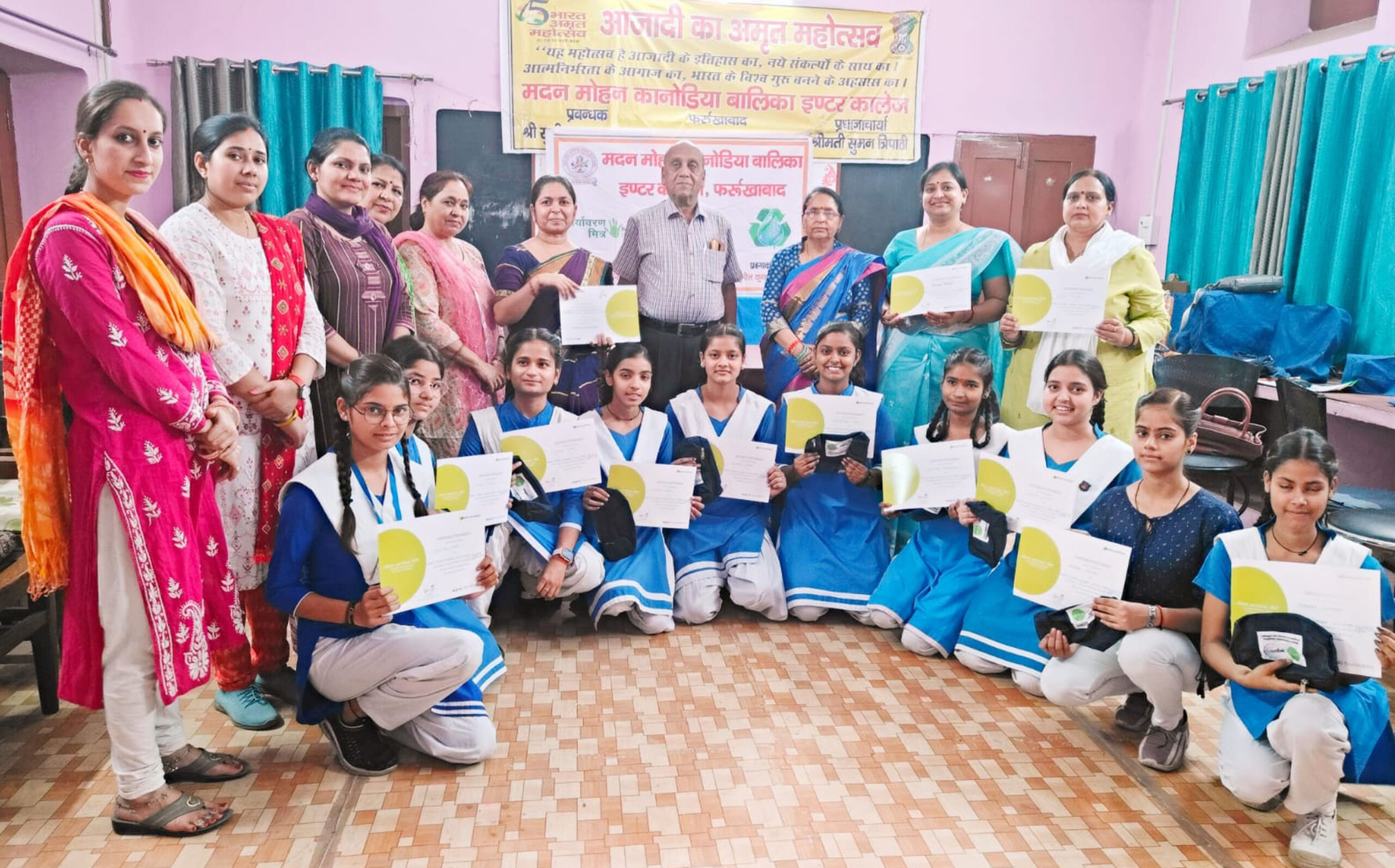 फर्रुखाबाद, समृद्धि न्यूज। विश्व पृथ्वी दिवस के उपलक्ष्य में मदन मोहन कनोडिया बालिका इंटर कालेज में विभिन्न पर्यावरणीय गतिविधियों का आयोजन किया गया। प्रधानाचार्या सुमन त्रिपाठी ने छात्राओं को पर्यावरण के प्रति संवेदनशील बनने के लिए जागरुक किया। ईको क्लब प्रभारी पारुल जैन, सदस्य पूनम शुक्ला तथा दर्शना शुक्ला की देखरेख में पृथ्वी दिवस पर स्लोगन, पोस्टर, भाषण आदि कार्यक्रम का आयोजन हुआ। छात्राओं ने इस बार पृथ्वी दिवस की थीम प्लैनेट टे प्लास्टिक के अन्तर्गत बेस्ट आउट ऑफ बेस्ट से उपयोगी वस्तुएं प्लान्टर्स आदि बनाये। प्रधानाचार्या तथा प्रबंधक ने ईको क्लब प्रोजेक्ट टीम के सदस्यों को अर्थियन पर्यावरण सर्टिफिकेट वितरित किये। कार्यक्रम में राधा दीक्षित, विजय लक्ष्मी, अर्चना देवी ने सहयोग किया। जैव विविधता प्रोजेक्ट सदस्य फरीजा, दीक्षा यादव, मोनिका राठौर, आयुषी पाठक तथा वैष्णवी दुबे मौजूद रही। कचरा प्रबंधन प्रोजेक्ट सदस्य वान्या वर्मा, गीतांजलि सैनी, सानया गुप्ता, वंशिका चौरसिया मौजूद रही। जल प्रोजेक्ट सदस्य इशिका गुप्ता, अफसरा अवस्थी, बसंती लाल, खुशी शर्मा, एलिसा दयाल को सर्टिफिकेट वितरित किये गये।