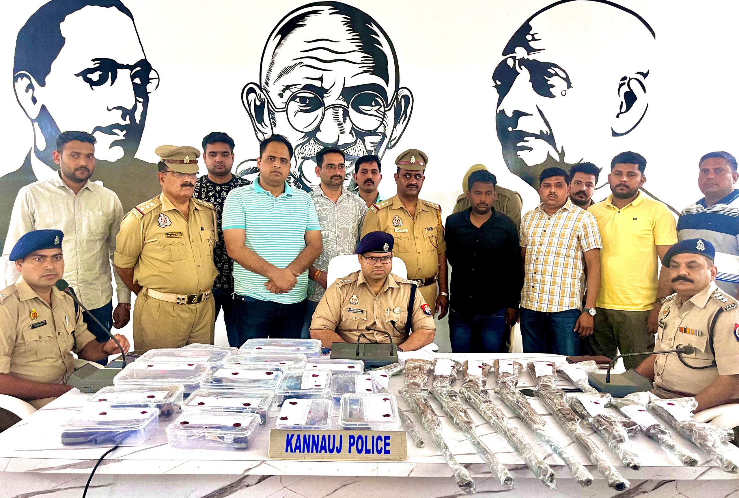 पुलिस अधीक्षक अमित कुमार आनंद ने प्रेस कान्फ्रेन्स के दौरान पत्रकारों से मुखातिब होते हुए बताया कि क्षेत्राधिकारी छिबरामऊ ओमकार नाथ शर्मा के नेतृत्व में एसओजी टीम प्रभारी उप निरीक्षक कमल भाटी एवं छिबरामऊ कोतवाली निरीक्षक जितेंद्र प्रताप सिंह को विगत 29 अप्रैल को मुखबिर द्वारा सूचना मिली थी कि ग्राम अकबरपुर स्थित पुराना खंडहर के पास एक अवैध शस्त्र फैक्ट्री संचालित है। मुखबिर की सूचना पर उक्त पुलिस अधिकारियों ने मौके पर पहुंचकर चारों ओर से घेराबन्दी कर छापा मारा। छापामार कार्यवाही के दौरान एसओजी व छिबरामऊ कोतवाली पुलिस ने मौके से एक शख्स को गिरफ्तार कर लिया। वहीं पुलिस टीम ने यहां से दो दर्जन अवैध असलहे एवं असलाह बनाने वाले उपकरण बरामद कर लिये। वहीं एक शख्स पुलिस को चकमा देकर मौके से फरार हो गया। एसपी ने बताया कि पुलिस टीम ने मौके से 04 अदद रायफल 315 बोर, 01 अदद बंदूक देसी 12 बोर, 04 अदद पौनिया 315 बोर तथा 14 अदद तमंचा 315 बोर व 01 अदद तमंचा अधबना 315 बोर एवं हथियार बनाने के उपकरण बरामद किये हैं। वहीं मौके से पकड़ा गया अभियुक्त जनपद मैनपुरी के थाना बेवर क्षेत्र के ग्राम जैतपुर का निवासी है। पूछताछ के दौरान उसने अपने फरार साथी का नाम ब्रजेश शर्मा निवासी ग्राम भरगैन जिला कासगंज बताया है, जिसकी गिरफ्तारी के लिए पुलिस टीमें लगा दी गईं हैं। जल्द ही उसे गिरफ्तार कर लिया जाएगा।