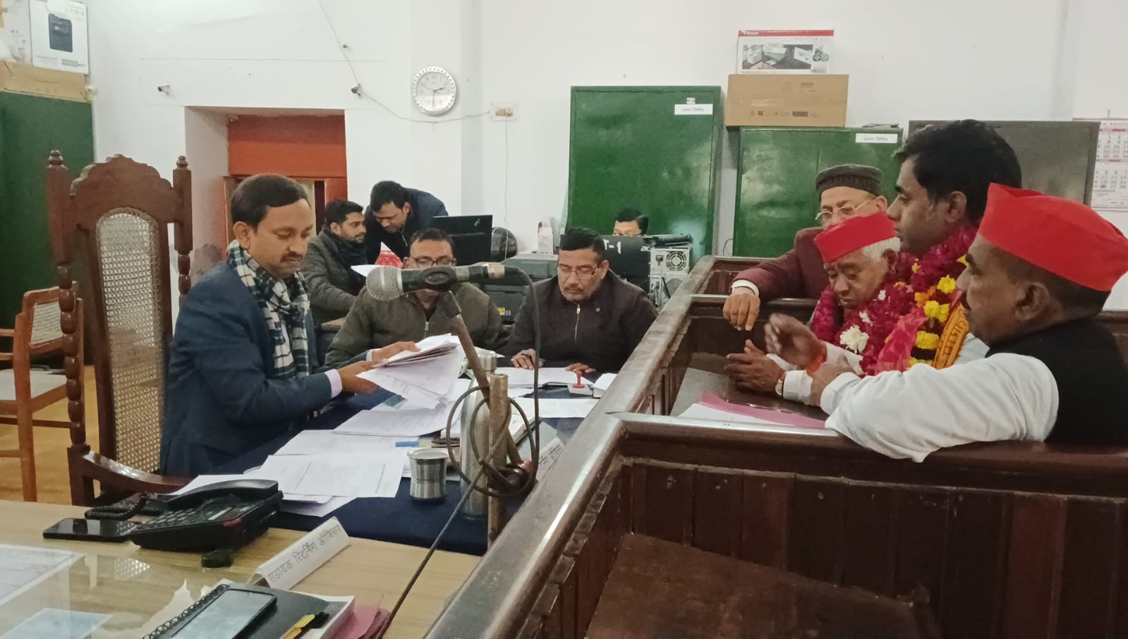 सपा प्रत्याशी अजीत प्रसाद ने दाखिल किया अपना नामांकन पत्र