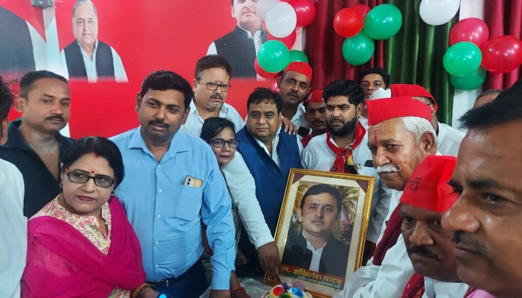 पार्टी कार्यालय पर केक काटकर अखिलेश यादव के दीर्घायु की कामना