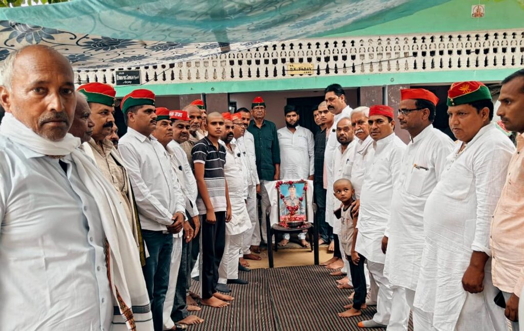 फर्रुखाबाद, समृद्धि न्यूज। 2 अक्टूबर को सपा का प्रतिनिधिमंडल सिक्किम में शहीद हुए जवान दिनेश कुमार यादव के पैतृक गांव बमिया पोस्ट रूपनगर ब्लॉक मोहम्मदाबाद में पहुंचा। जहां शहीद के परिजनों से मिलकर शोक संवेदना व्यक्त कर श्रद्धांजलि अर्पित की। इस अवसर पर सपा जिलाध्यक्ष चंद्रपाल सिंह यादव ने शहीद दिनेश कुमार यादव के चित्र पर पुष्प अर्पित कर श्रद्धांजलि दी। साथ ही परिवार वालों से कहा कि वह शहीद दिनेश कुमार यादव की अपने गांव में प्रतिमा लगवाएं। वह राष्ट्रीय अध्यक्ष अखिलेश यादव से बात कर उनकी प्रतिमा का अनावरण करवाने का प्रयास करेंगे। इस मौके पर लोकसभा प्रभारी नवल किशोर शाक्य, जिला महासचिव इलियास मंसूरी, जिला उपाध्यक्ष सुरेंद्र सिंह गौर, डा0 नवरंग सिंह, बेंचेलाल यादव, के0के0 यादव, अमित यादव, कश्मीर सिंह, साजिद अली खान, विवेक यादव, जहान सिंह लोधी, अरविंद कश्यप, संजय यादव, शिवशंकर शर्मा, सुलक्षणा सिंह मौजूद रहे।