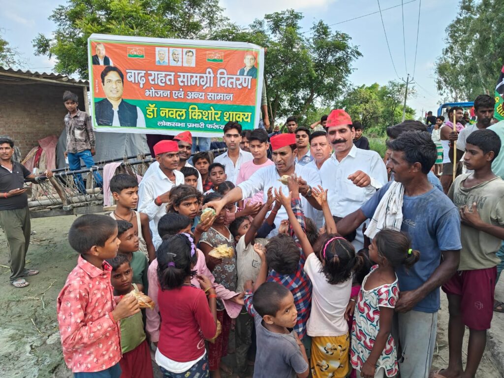 सपा के लोकसभा प्रभारी ने बाढ़ पीडि़तों को बांटे लंच पैकेट