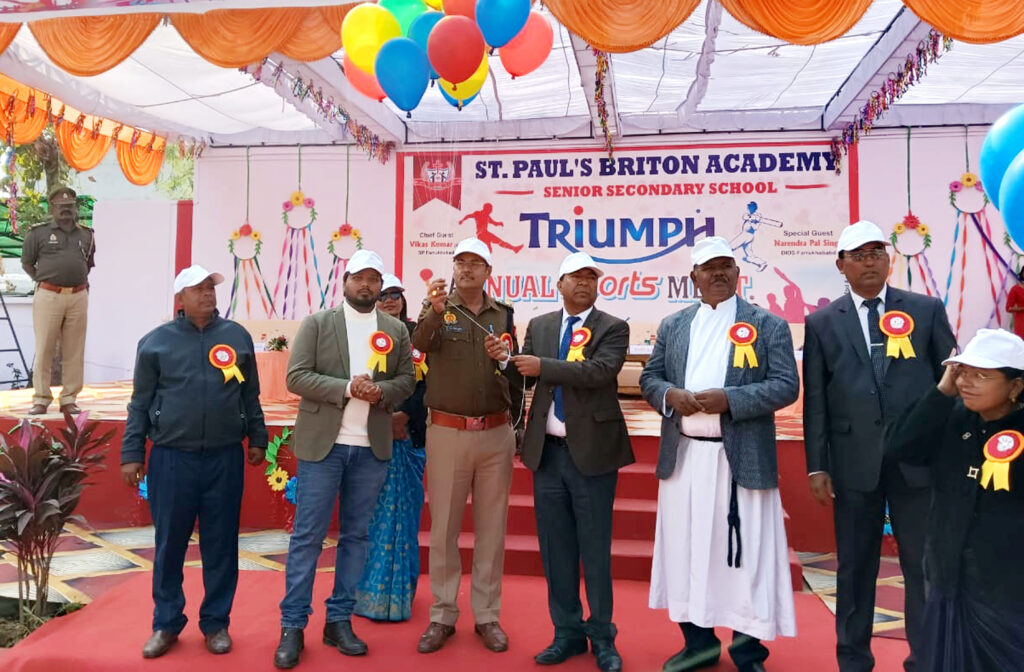 फर्रुखाबाद, समृद्धि न्यूज। सेण्ट पॉल्स ब्राइटन एकेडमी सीनियर सेकेण्डरी स्कूल बंधौआ फतेहगढ़ में शनिवार को वार्षिक खेलकूद प्रतियोगिता का आयोजन हुआ। कार्यक्रम का शुभारम्भ पादरी जयपाल मैसी व पादरी स्टीफन ने प्रार्थना कर किया। मुख्य अतिथि अपर पुलिस अधीक्षक डा0 संजय सिंह ने दीप प्रज्वलन कर गुब्बारे उड़ाकर कार्यक्रम का शुभारम्भ किया। एएसपी संजय सिंह ने बच्चों की प्रशंसा की एवं उनके उज्जवल भविष्य के लिए उपने अनुभव को साझा किया। कक्षा 7 एवं कक्षा 8 की छात्राओं द्वारा प्रभु वंदना नृत्य प्रस्तुत किया गया। कक्षा 10 कक्षा 11 कक्षा 12 की छात्राओं द्वारा स्वागत नृत्य प्रस्तुत कर मुख्य अतिथि एवं विशिष्ट अतिथिओं का स्वागत किया गया। मुख्य अतिथि ने स्कूल ध्वज का आरोहण कर कार्यक्रम का विधिवत् आरम्भ किया गया। मशाल प्रज्जवलन कर स्कूल हैड व्बॉय मास्टर प्रान्शु ने सेण्ट लूक, सेण्ट मैथ्यू, सेण्ट जॉन और सेण्ट पीटर हाउस के सभी कैप्टन द्वारा मशाल दौड़ को पूरा कर अन्त में मशाल पी0टी0आई0 संजीव कुमार सिंह को सुपुर्द की गई एवं प्रतीकात्मक रूप से खेलकूद का शुभारम्भ किया गया। खेलकूद एवं रंगारंग कार्यक्रम का मिला जुला रूप देखने को मिला। खेलकूद प्रतियोगिता में 100 मीटर रेस (बालक) जूनियर में प्रथम स्थान पर ग्रीन हाउस के छात्र आयुष पाल कक्षा ४, द्वितीय स्थान पर ग्रीन हाउस के छात्र रौनक कुशवाह कक्षा 6 तथा तृतीय स्थान पर येलो हाउस के छात्र नवीन यादव कक्षा 4 रहे। 100 मीटर रेस (बालक) सीनियर में प्रथम स्थान पर येलो हाउस के छात्र यश प्रताप कक्षा 9, द्वितीय स्थान पर रेड हाउस के छात्र सनी शर्मा कक्षा 12 तथा तृतीय स्थान पर येलो हाउस के छात्र कार्तिके सिंह कक्षा 12 रहे। 400 मीटर (बालक) रिले रेस में प्रथम स्थान पर ग्रीन हाउस, द्वितीय स्थान पर ब्लू हाउस तथा तृतीय स्थान पर रेड हाउस रहा। 400 मीटर (बालिका) रिले रेस में प्रथम स्थान पर रेड हाउस द्वितीय स्थान पर येलो हाउस तथा तृतीय स्थान पर ग्रीन हाउस रहा। कल्चरल प्रोग्राम में यैलो हाउस, मार्च पास्ट में ग्रीन हाउस और ड्रिल में कक्षा 4 और कक्षा 5 के छात्र-छात्राएं प्रथम रहे। सभी खेल प्रतियोगितओं में रेड हाउस प्रथम रहा। द्वितीय स्थान पर ब्लू हाउस तथा तृतीय स्थान पर ग्रीन हाउस रहा। सभी प्रतियोगिताओं में अपना दबदबा बनाते हुए सर्वाधिक पदक जीतकर सनी शर्मा ने स्र्पाेटस व्वॅाय की ट्राफी अपने नाम की एवं सर्वाधिक पदक जीत कर गर्ल में अंशिका ने स्र्पोटस गर्ल की ट्राफी पर अपना कब्जा जमाया। विद्यालय के डायरेक्टर रोजीशन विश्वासी ने बच्चों को स्र्पाेटस में बढ़-चढक़र हिस्सा लेने के लिए प्रोत्साहित किया एवं खेलो इण्डिया के जिक्र करते हुए उससे प्ररित होकर खेल में करियर बनाने की सलाह दी। विद्यालय के प