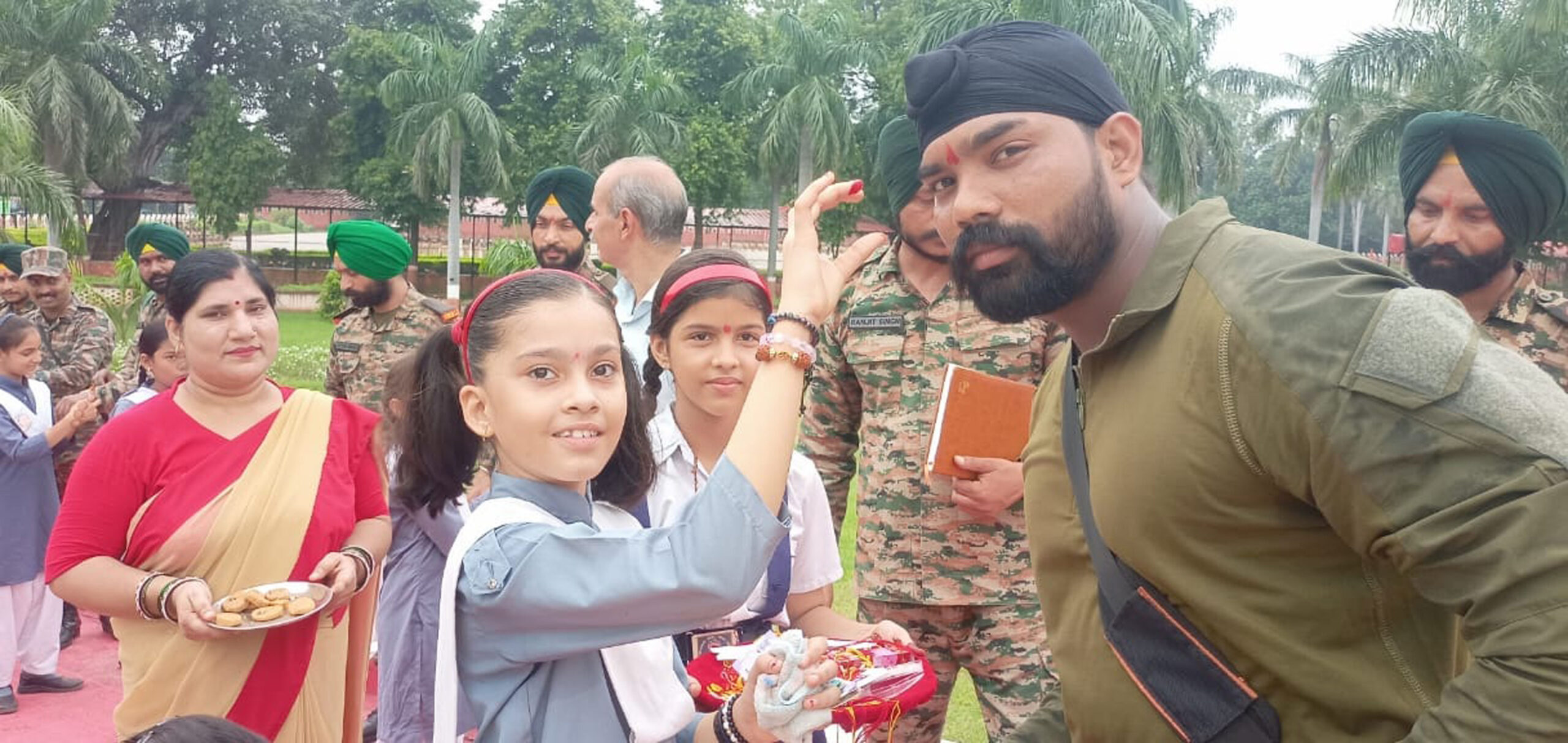 छात्रा बहनों ने सैनिकों की कलाई पर बांधी राखी